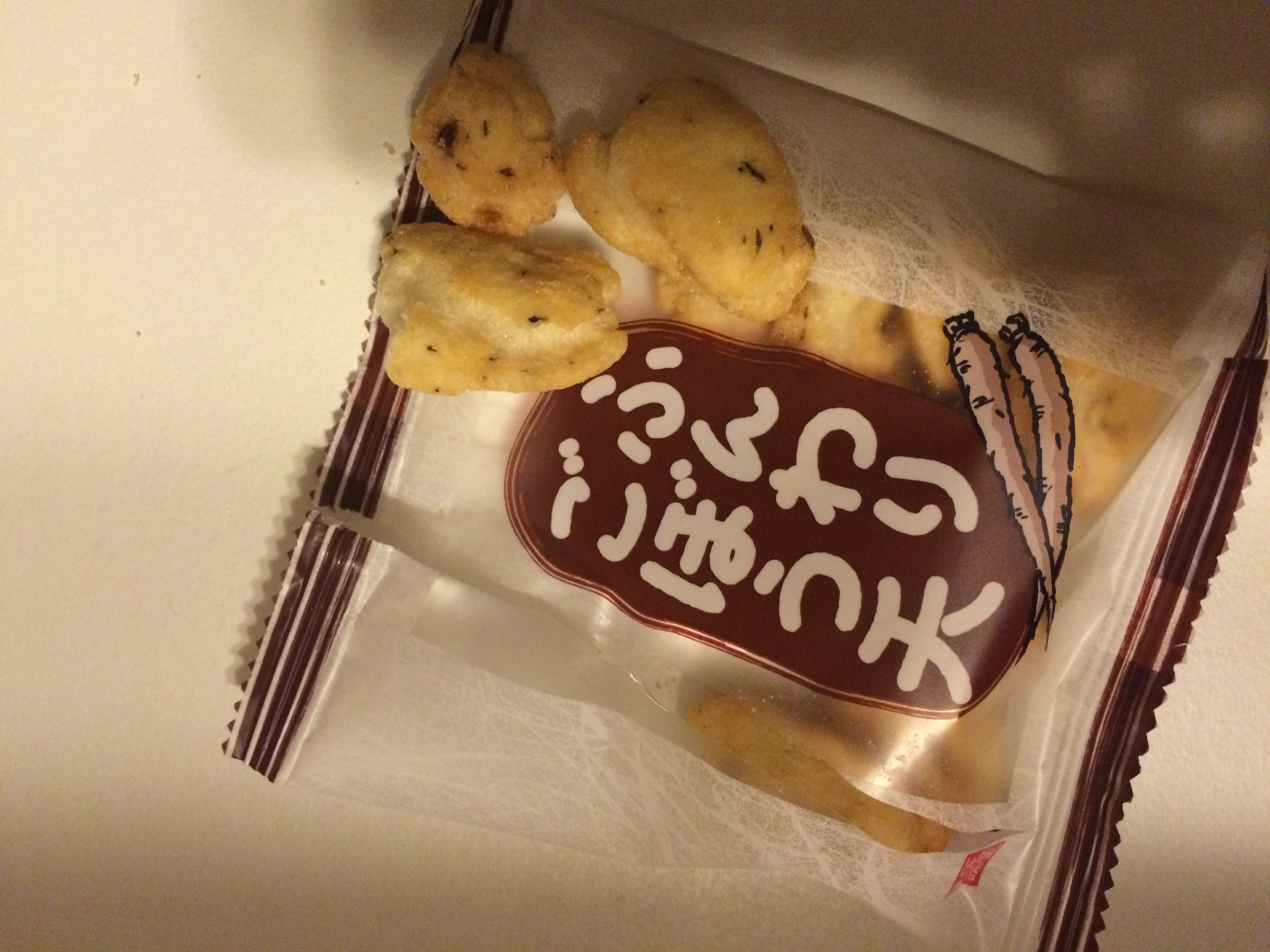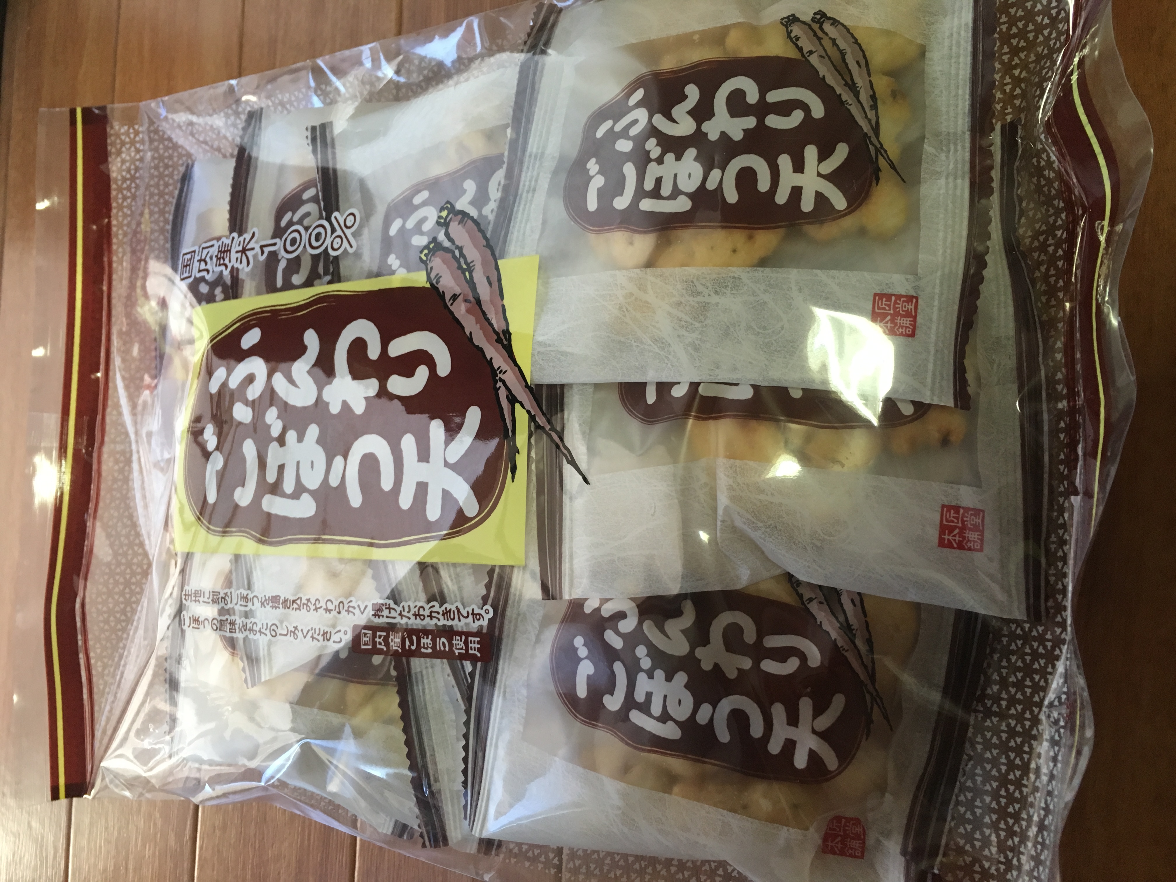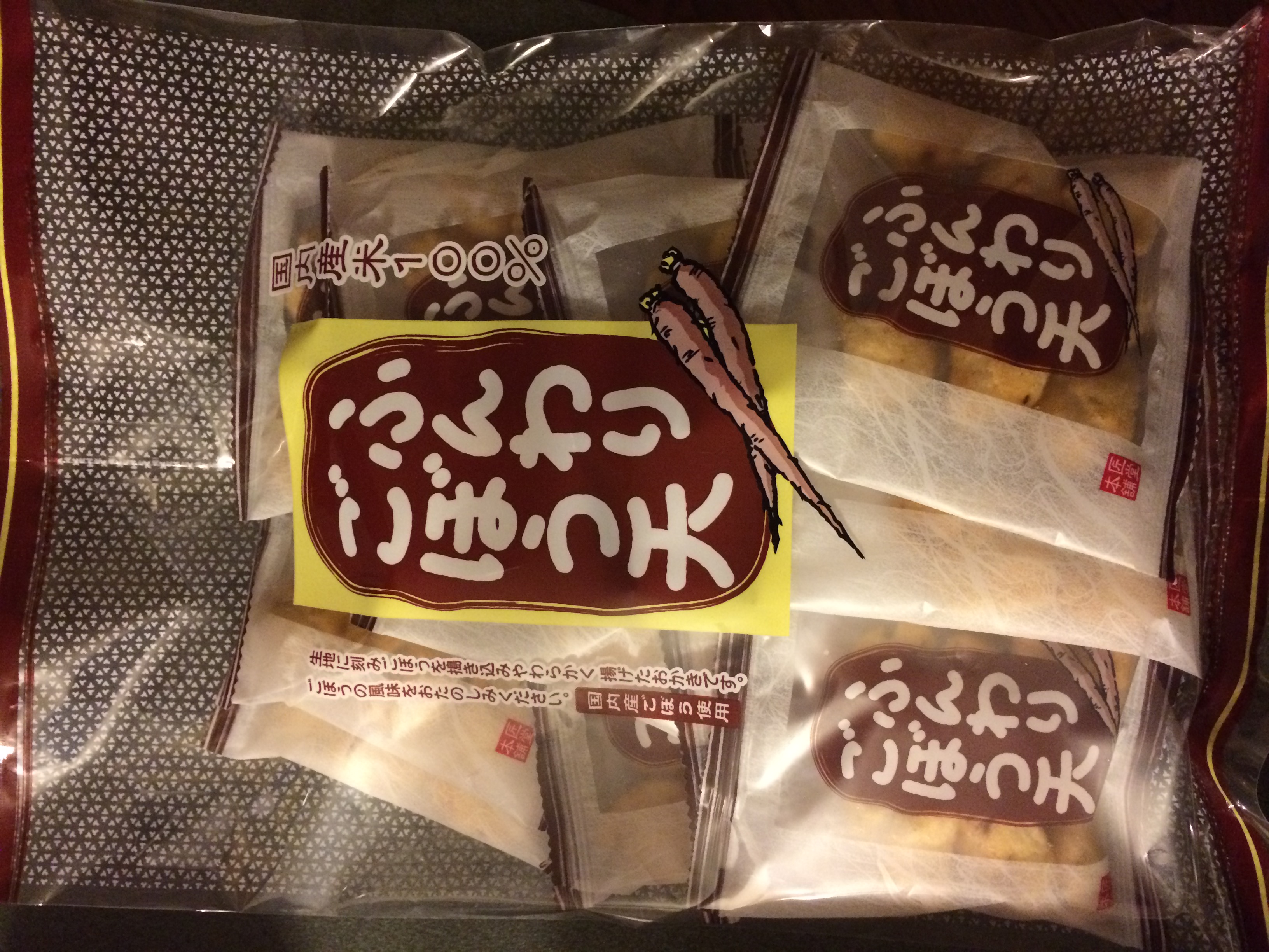 日光名水、国産もち米、国産ごぼうを使用して作り上げた牛蒡味のおかき。
