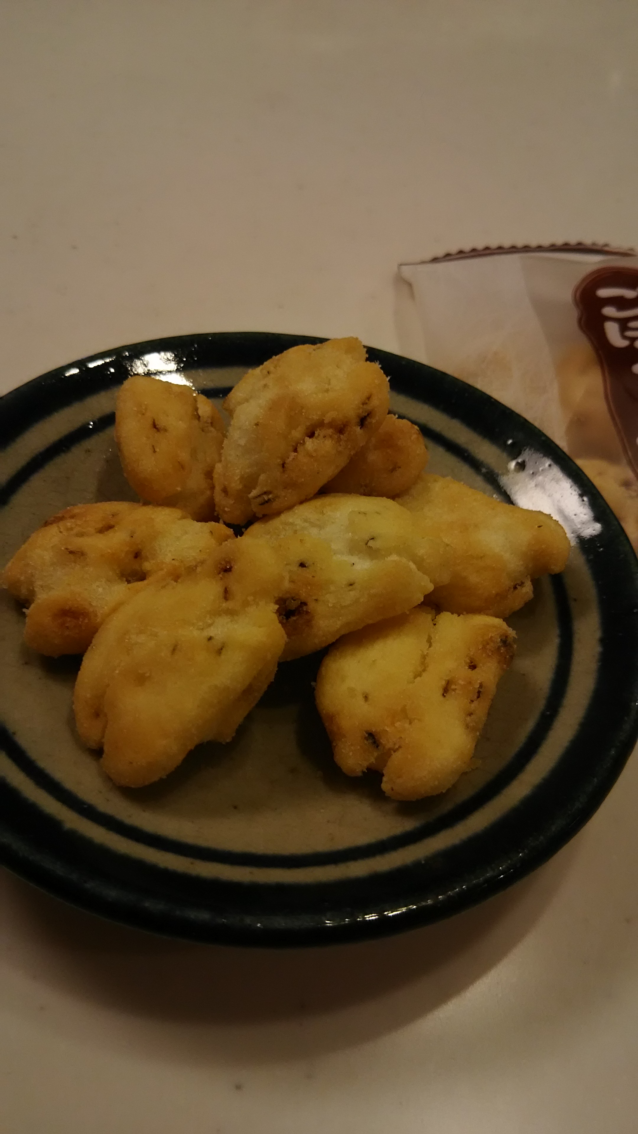 つまむのに大きさがちょうどいいんですよね~ 大きすぎずつまみやすいし、一口で口に入れやすい大きさです。国産ごぼうの粒々のがたくさん見えます。刻んだごぼうがふんだんに練り込んであるんですね~。