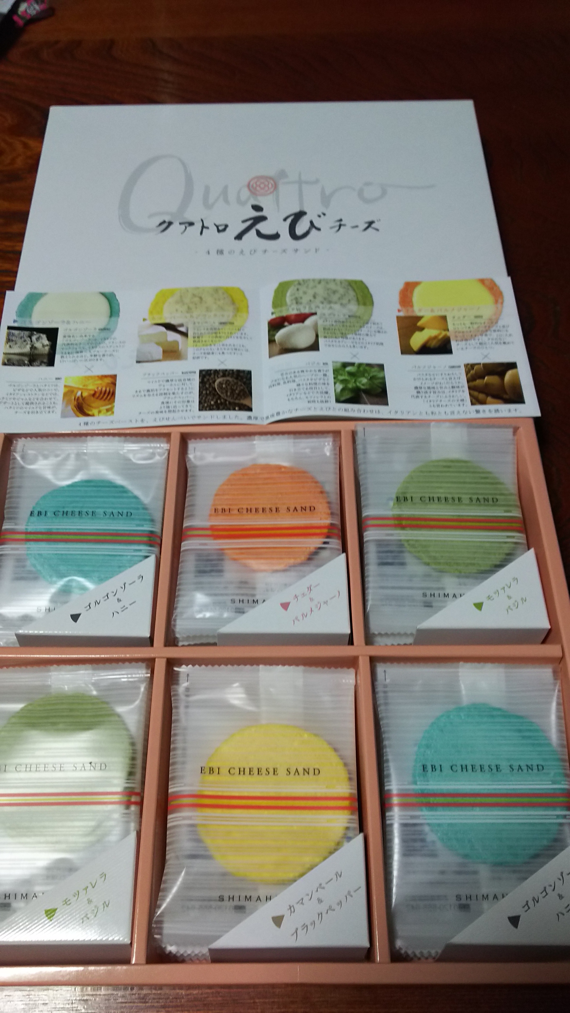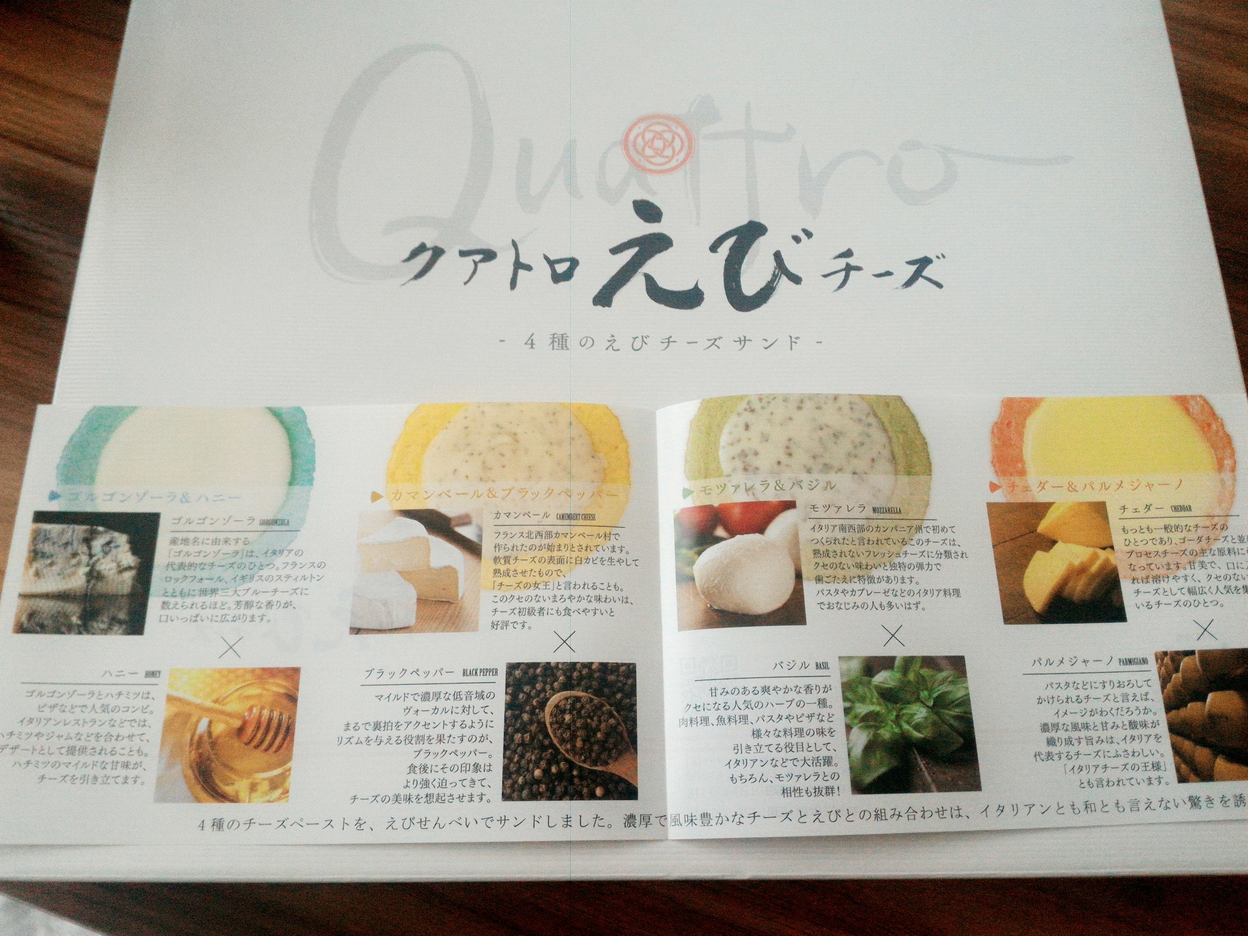 それはまるでジャパニーズ・マカロン。4種類の本格チーズを4色のカラフルなえびせんべいでサンドしました。濃厚で風味豊かなチーズとえびの組合せは、イタリアンとも和とも言えない驚きを誘います。