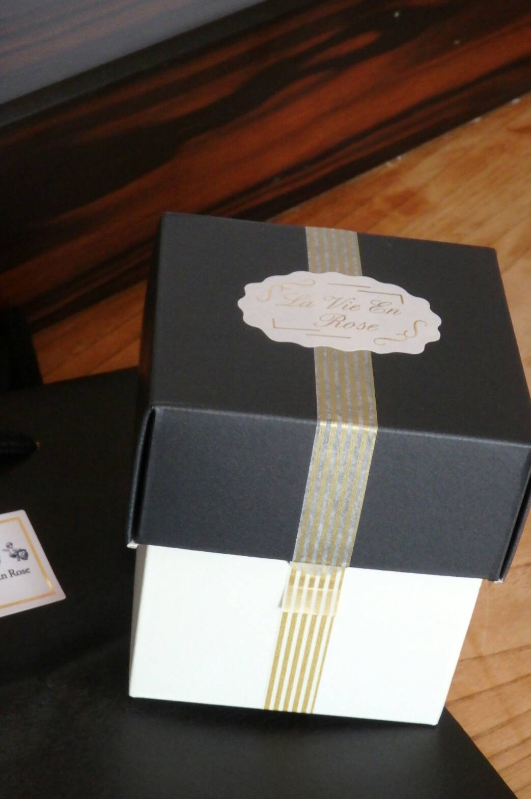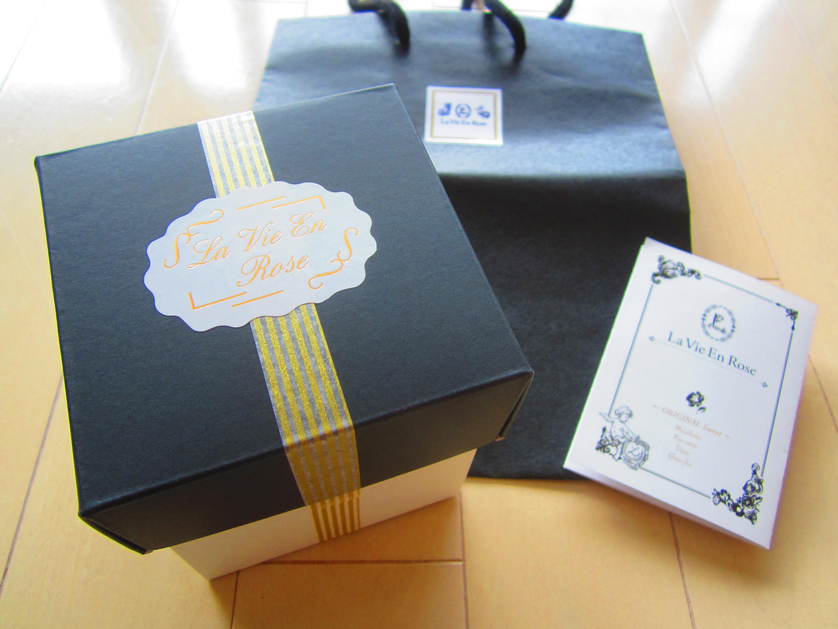 箱を開けると、落ち着いた雰囲気の可愛らしいプレゼントボックスみたいな箱が出てきました。手提げ袋が入っていたので、プレゼントする時や、手土産に持って行く時に嬉しい気配りだと思いました。
