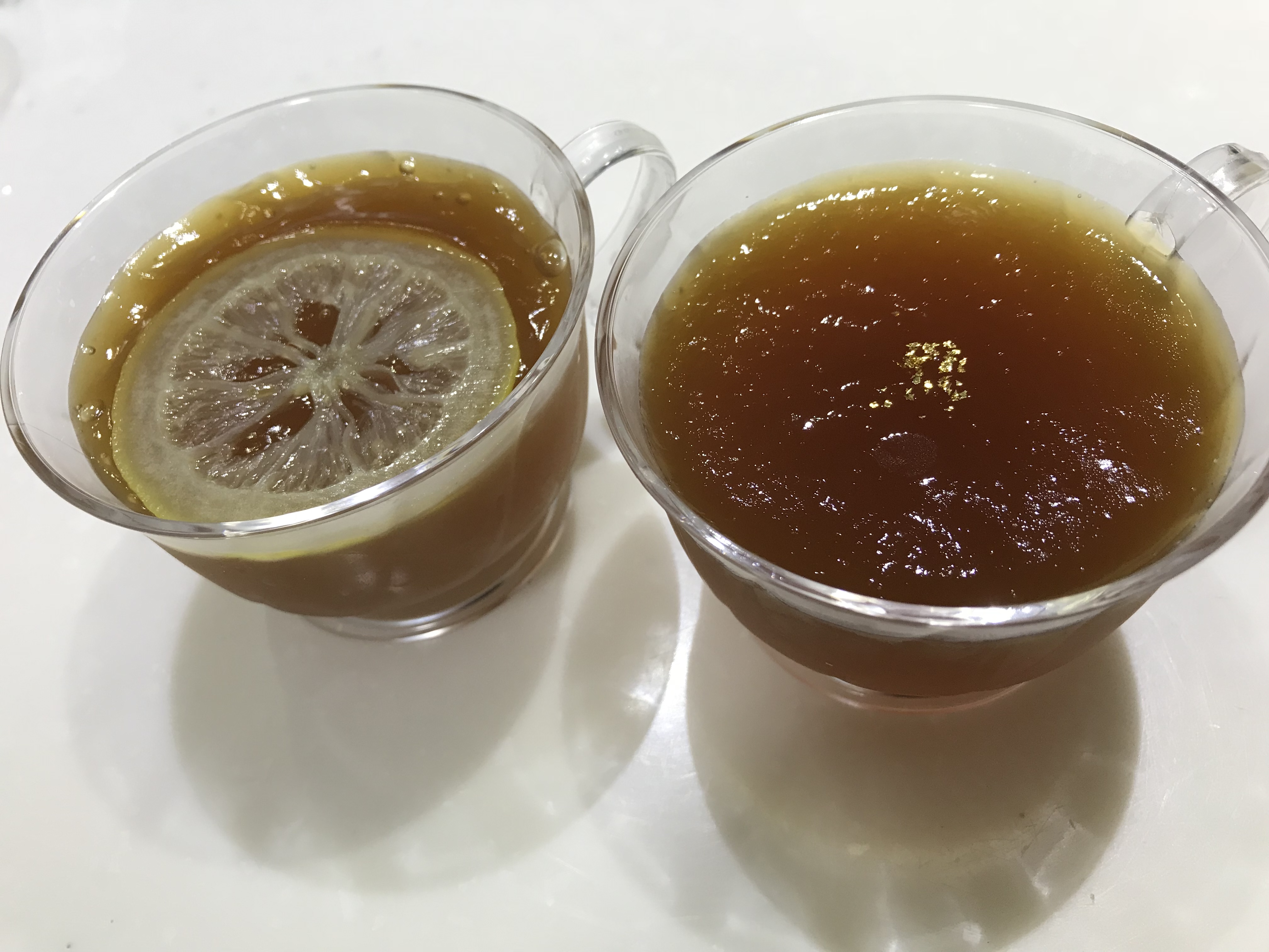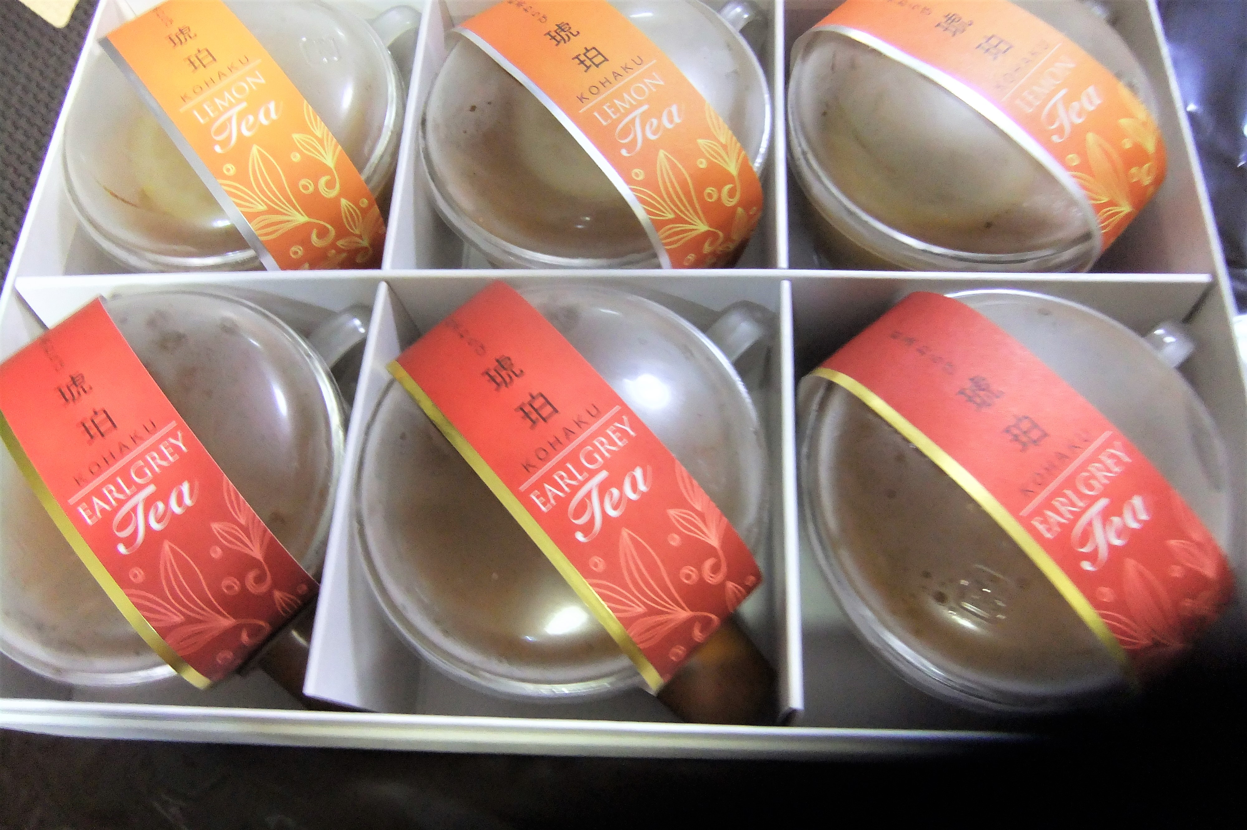 味は、レモンティーとアールグレイの2種類。レモンティーは、レモンの香りと酸味を楽しめるサッパリした味わい。広島県産の蜜漬けレモンをそえています。アールグレイは、紅茶の風味をそのまま感じられます。好みに合わせてコーヒーフレッシュをかけて頂くとミルクティーのような味わいが楽しめます。
