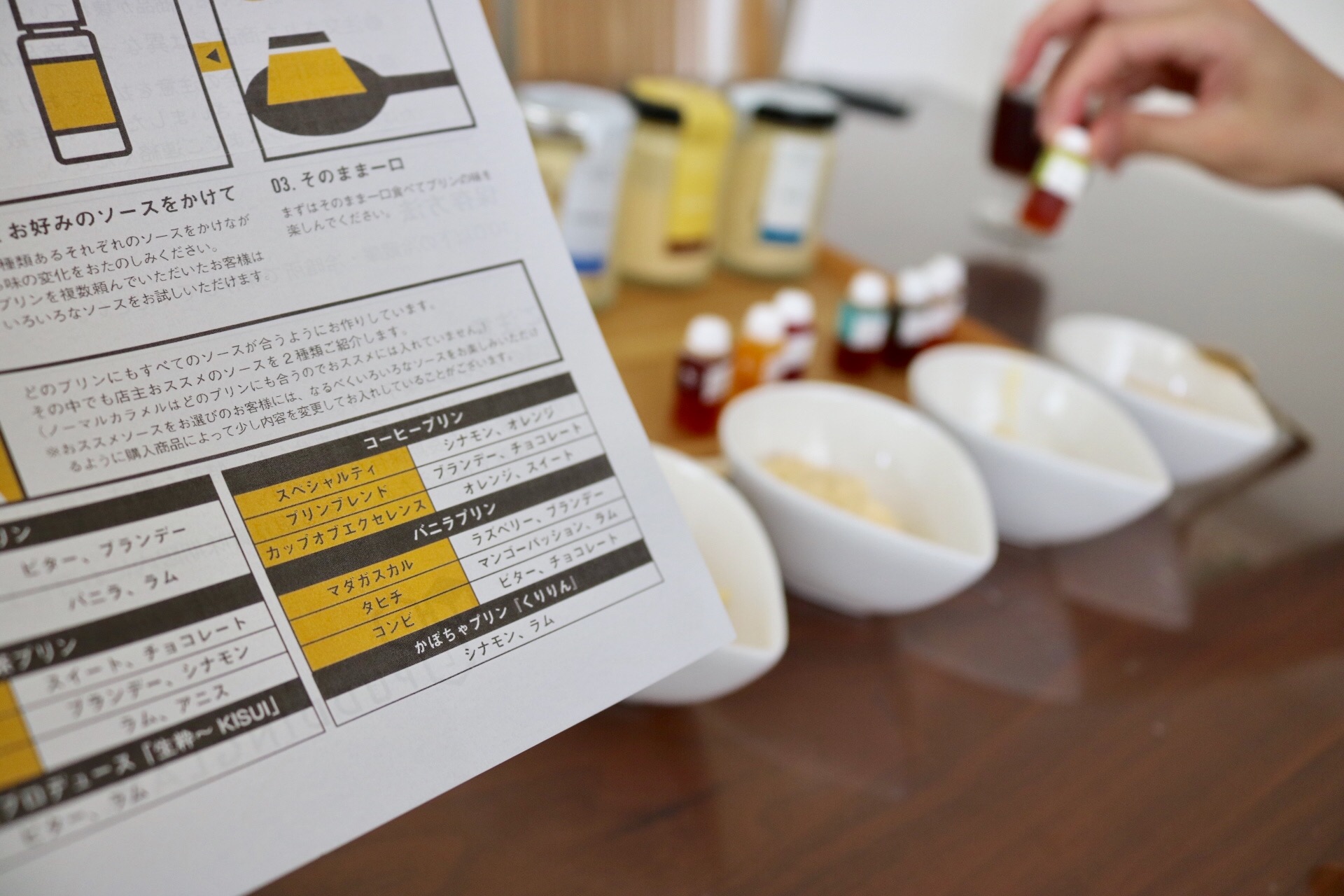 さらに、8種類のソースがついているので、食べ比べながら自分好みのプリンに変化させることができます。
