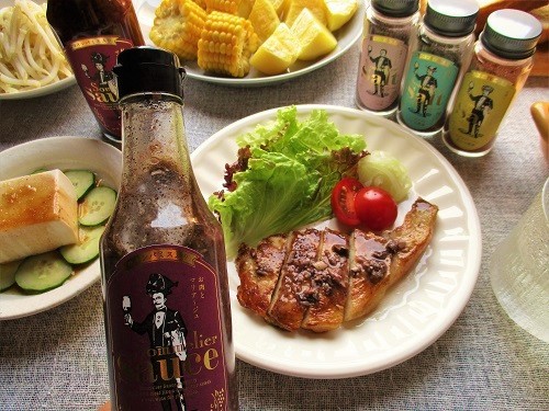 別の日の夕食に鶏もも肉を焼き、「スパイシーソルト」をかけて食べました。カレー味のソルトは味がしっかりしているので、これだけで味付けがOK!とても便利で助かりました。