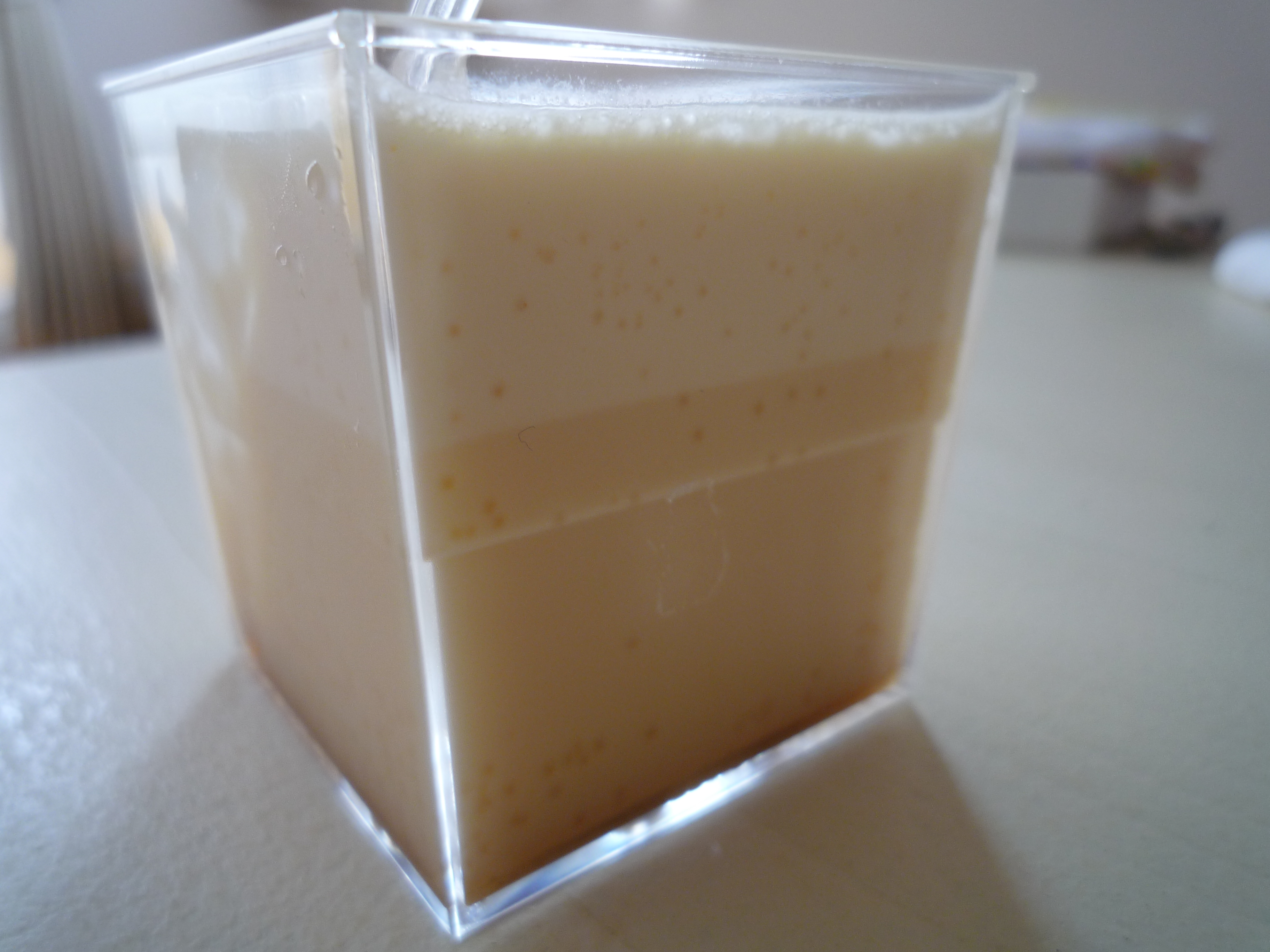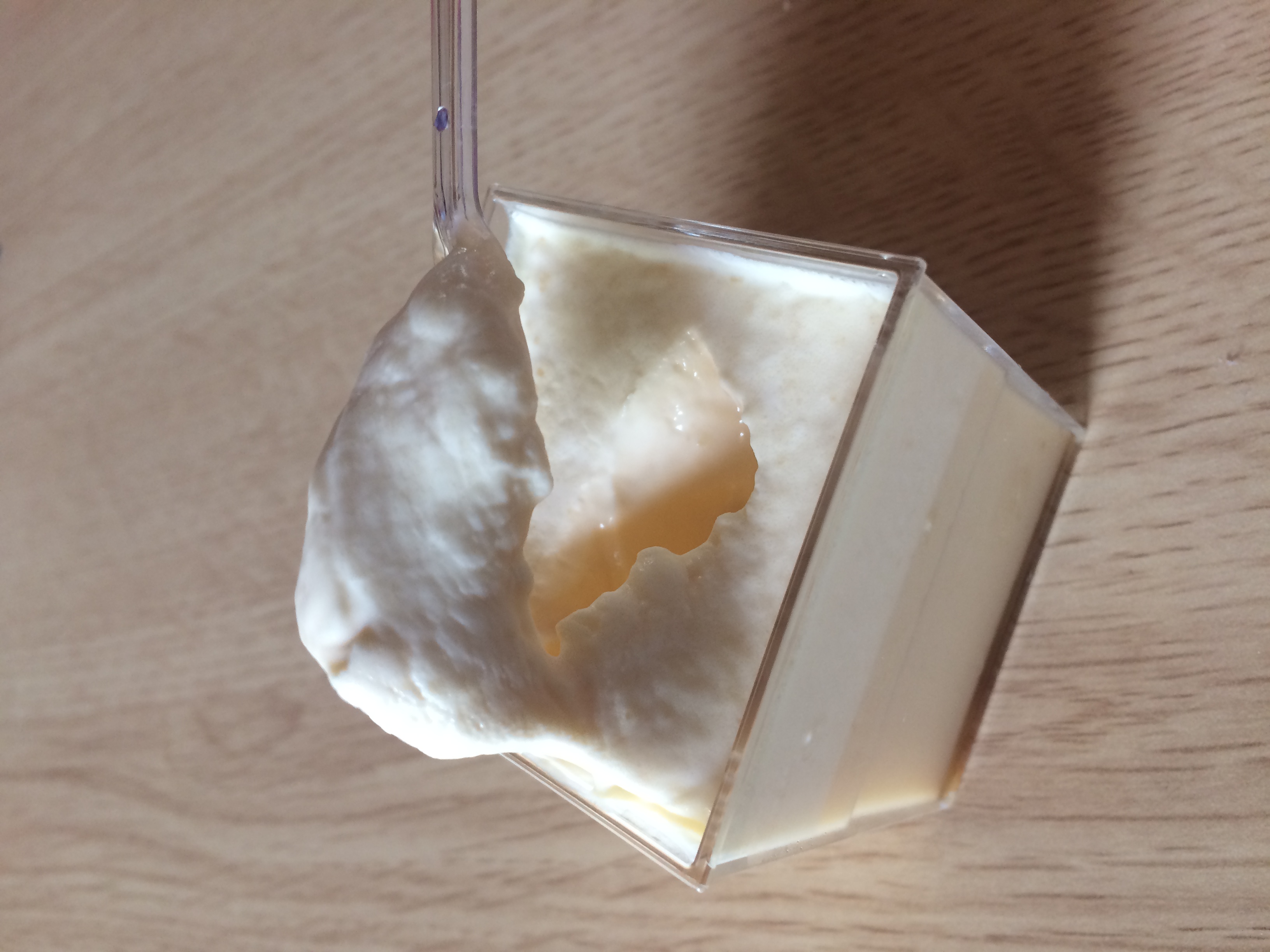 早速ひとつ取り出して側面から見てみると、プリンが2層になっているのが分かります。