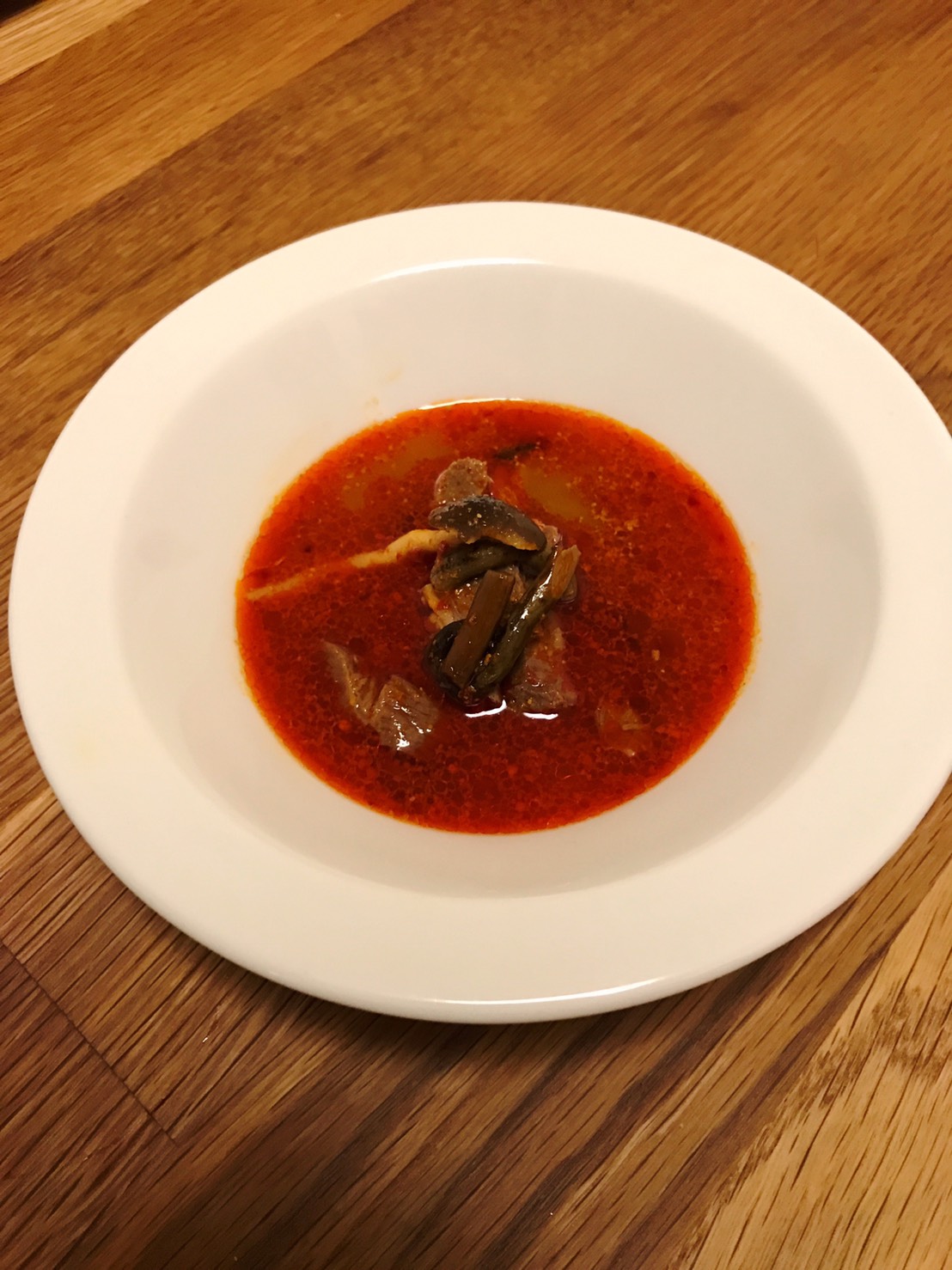 万能で、そのままユッケジャンスープとして食べてもよし、具材を足して食べるのもよし、最後に〆で麺やご飯をいれてもおいしくいただけます。