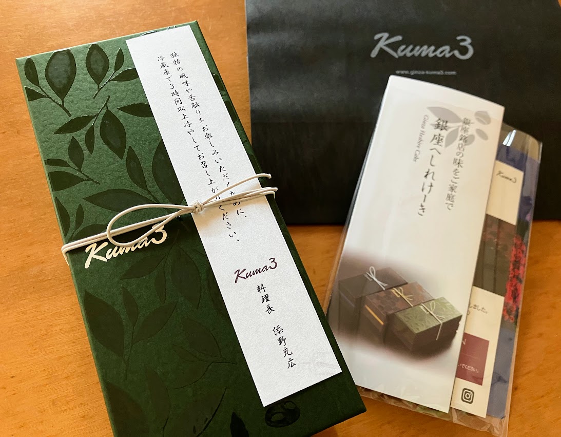 銀座の日本料理店「Kuma3(クマサン)」がプロデュースする「抹茶のへしれけーき」です。京都府、三重県産の「宇治抹茶」、厳選された大粒の兵庫県丹波産「大納言小豆」を使用しています。また、高品質なフランス産発酵バター、SDGsに積極的に取り組んだ地域循環型の生産法で育てた、高品質な平飼い卵の「フルーツエッグ」など、料理長こだわりの素材と特別な製法で1つ1つ丁寧に焼き上げています。1日20本限定のケーキです。お茶請けはもちろん、ワインとのマリアージュもおすすめ。贈り物にも最適な逸品。お中元やお年賀にもおすすめです。
