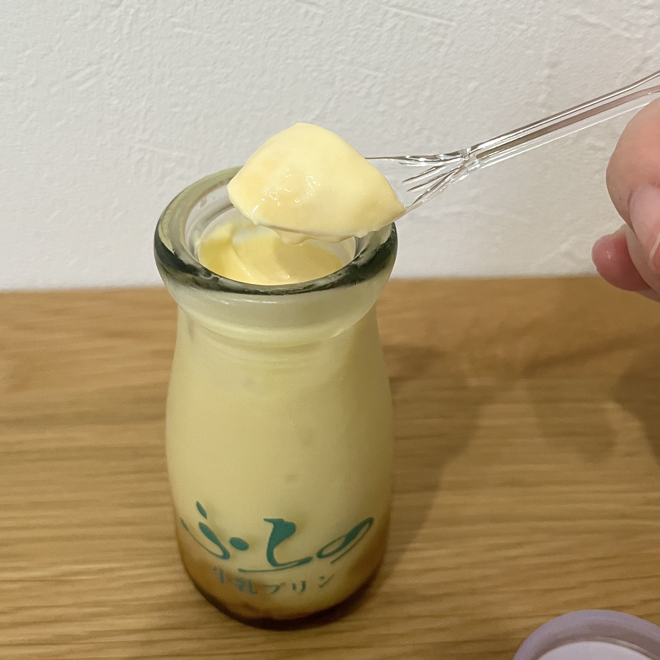 1つのプリンで3つの味わいを楽しむことができます。まず一口目はチーズのような濃厚な深いコクが楽しめます。進んでいくとプリン層がふんわり、牛乳本来の味。底に入っているカラメルソースと絡めると、香ばしさが合わさって少しビターな味わいに。