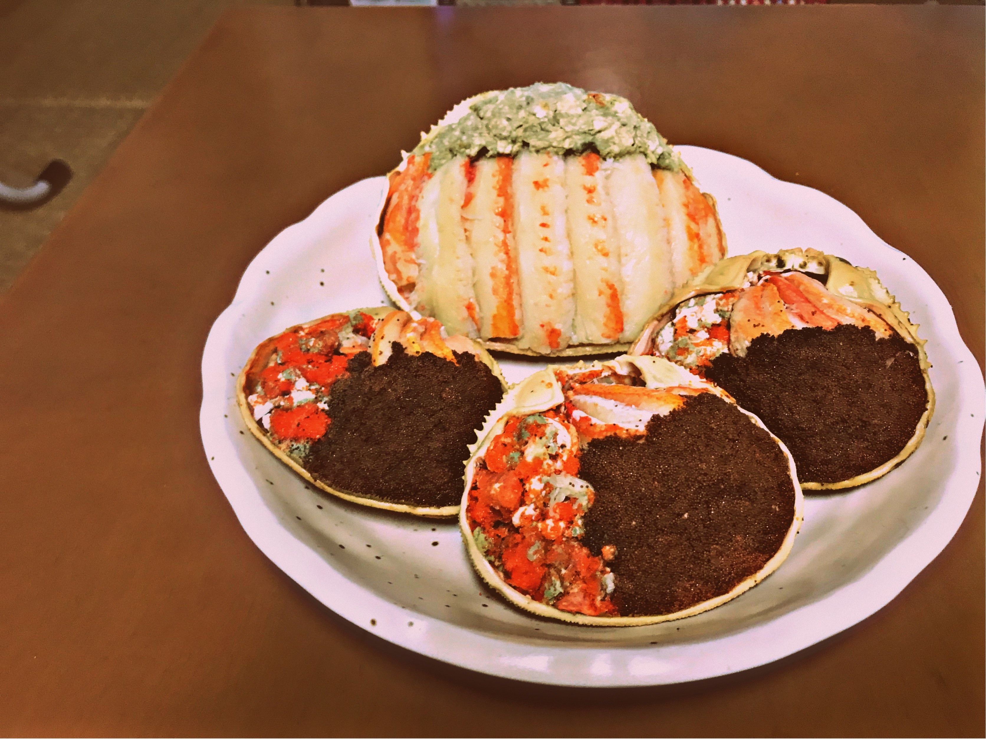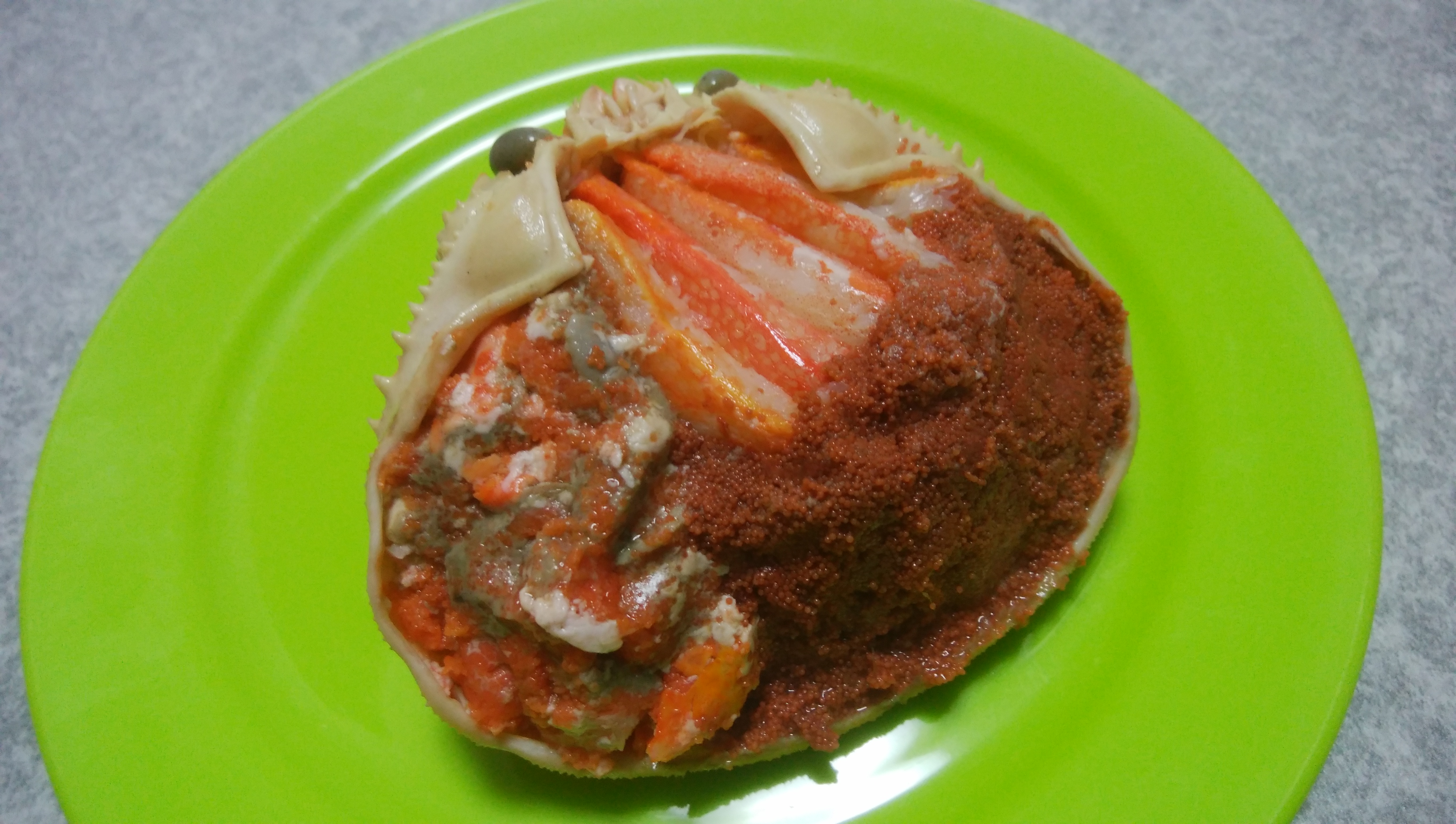 解凍は、袋から取り出し甲羅を皿に乗せ、冷蔵庫で半日から一日かけて、じっくりと解凍して下さい。