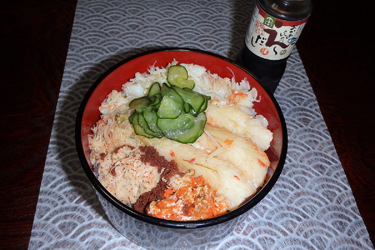 あつあつご飯の上に乗せていただき、セットに付いている濃縮出汁を少し垂らせば、簡単に豪華なズワイガニガニ夫婦丼としてもお召し上がりいただけます。