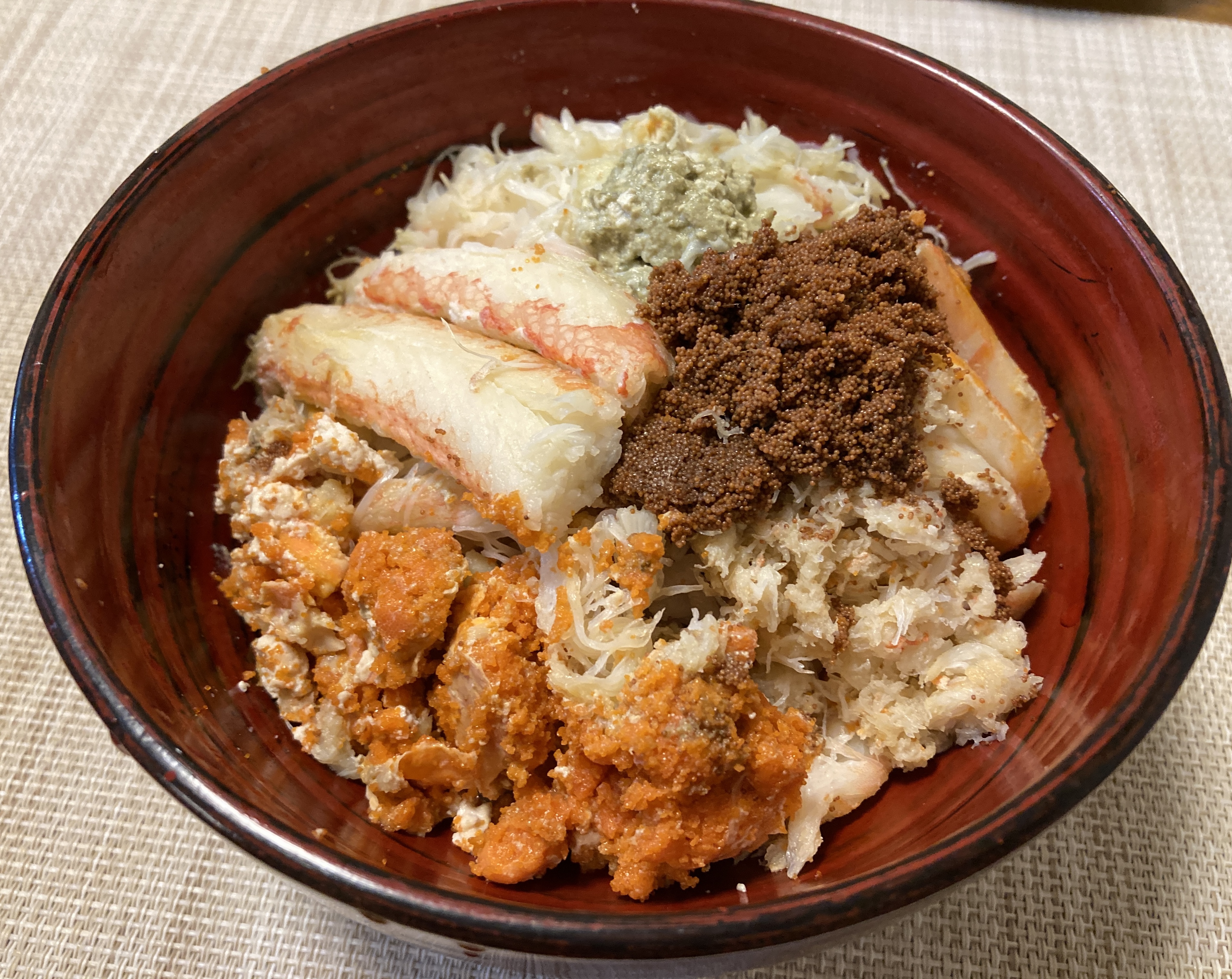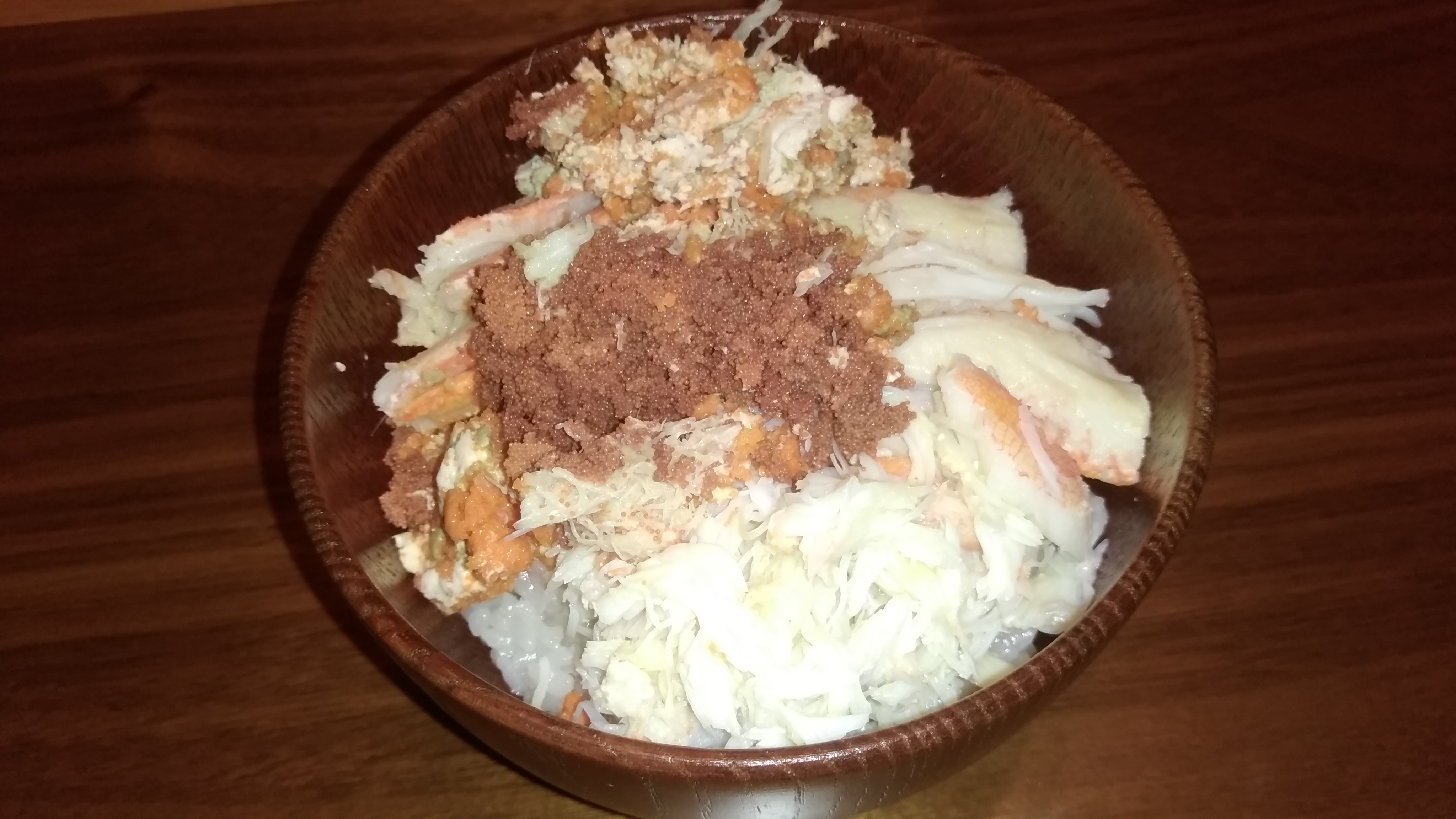 「そのままでもうまいけどタレ掛けた方がご飯に合う~♪」とカニ丼を楽しんでいました。
