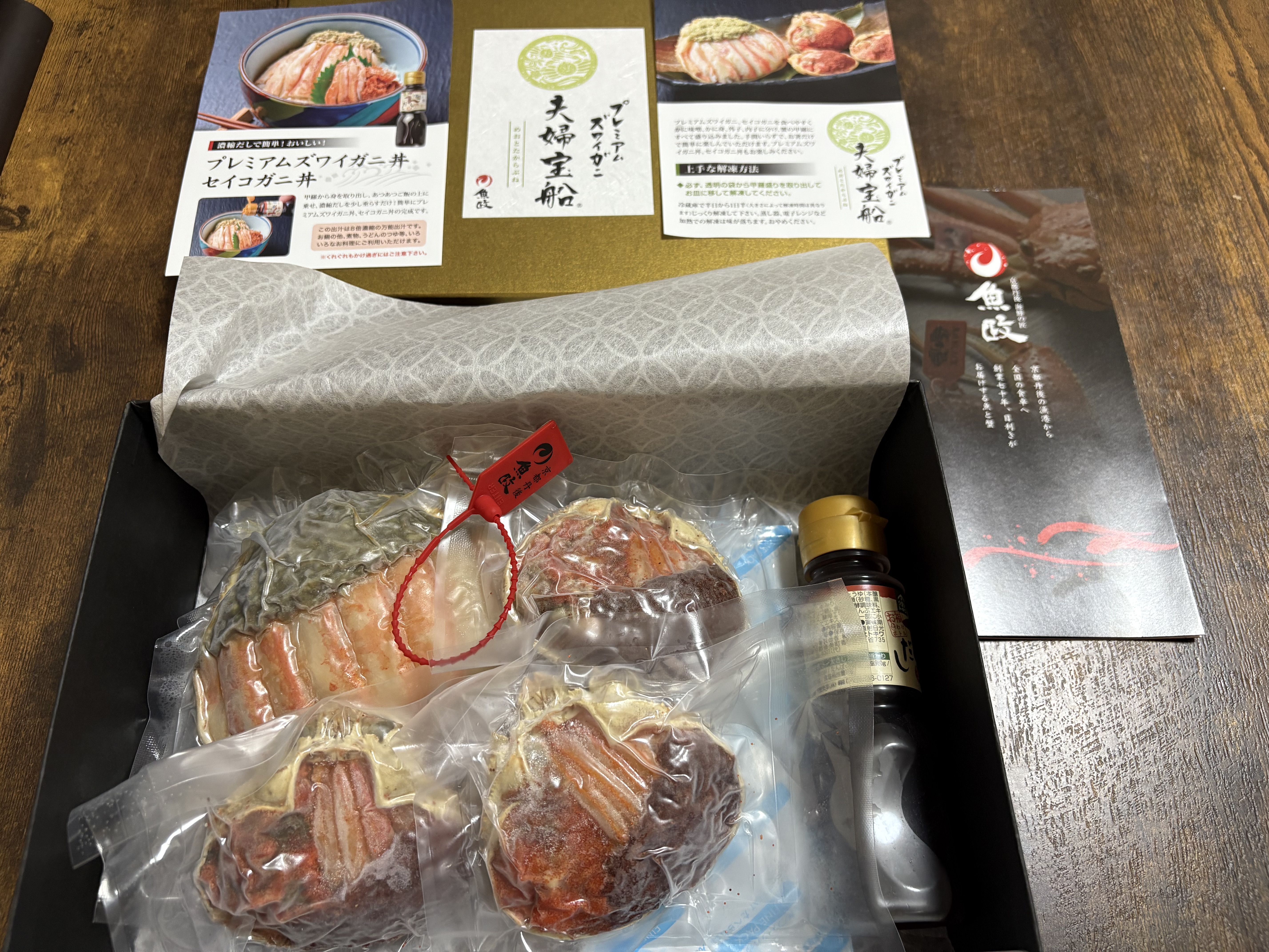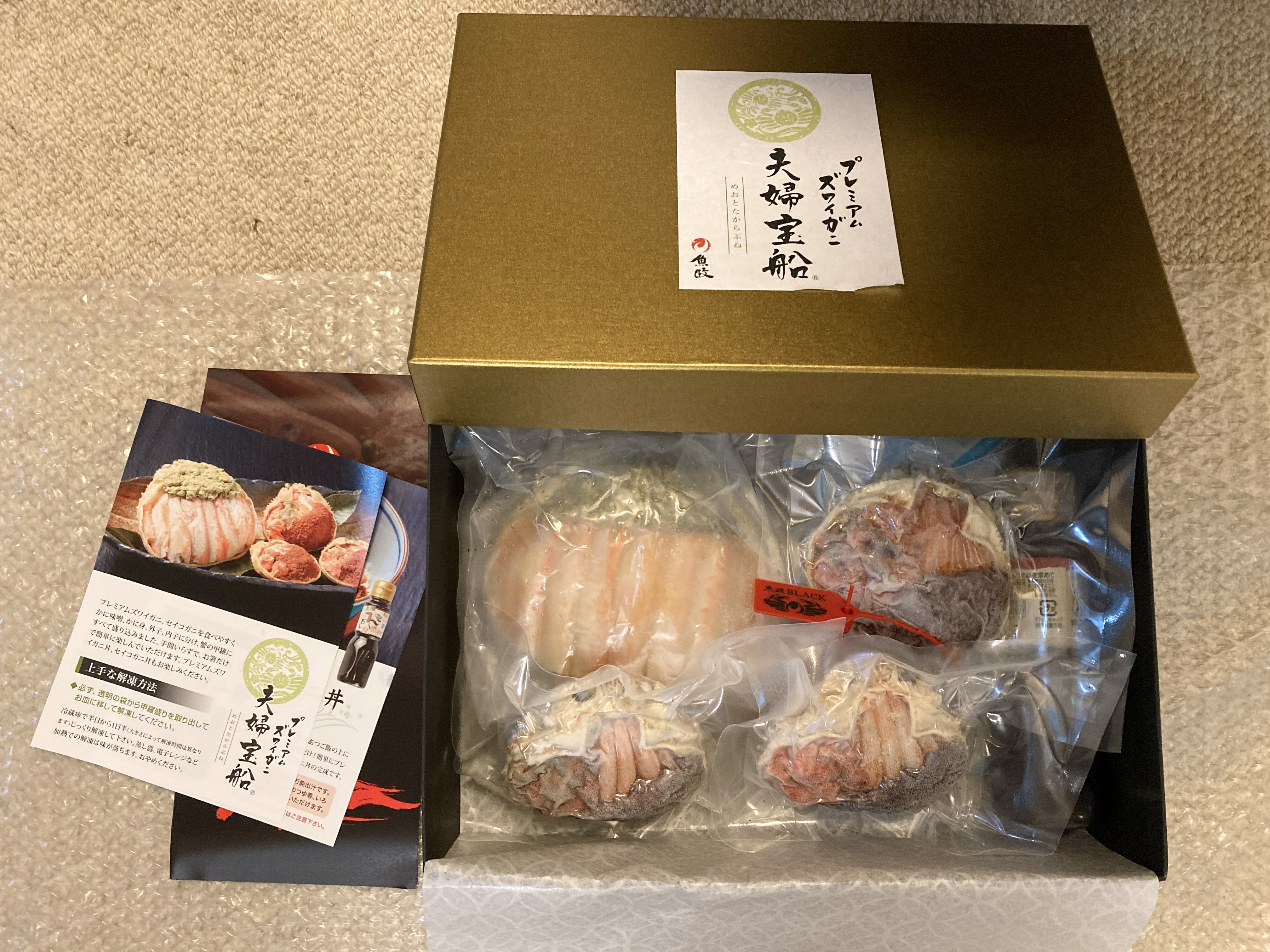 上品な箱にカニが鎮座された状態で届くので、開封しただけでテンションが上がります。