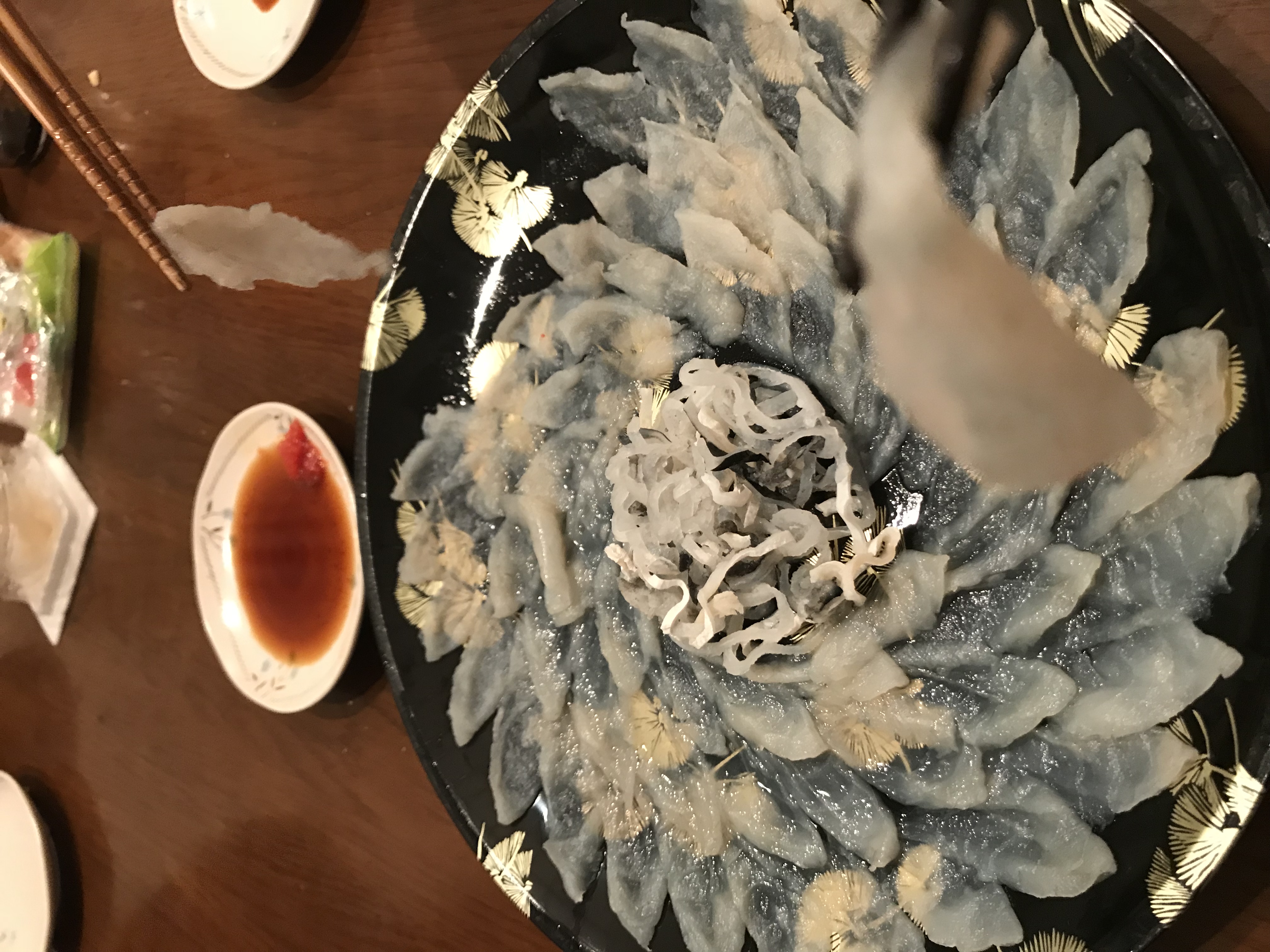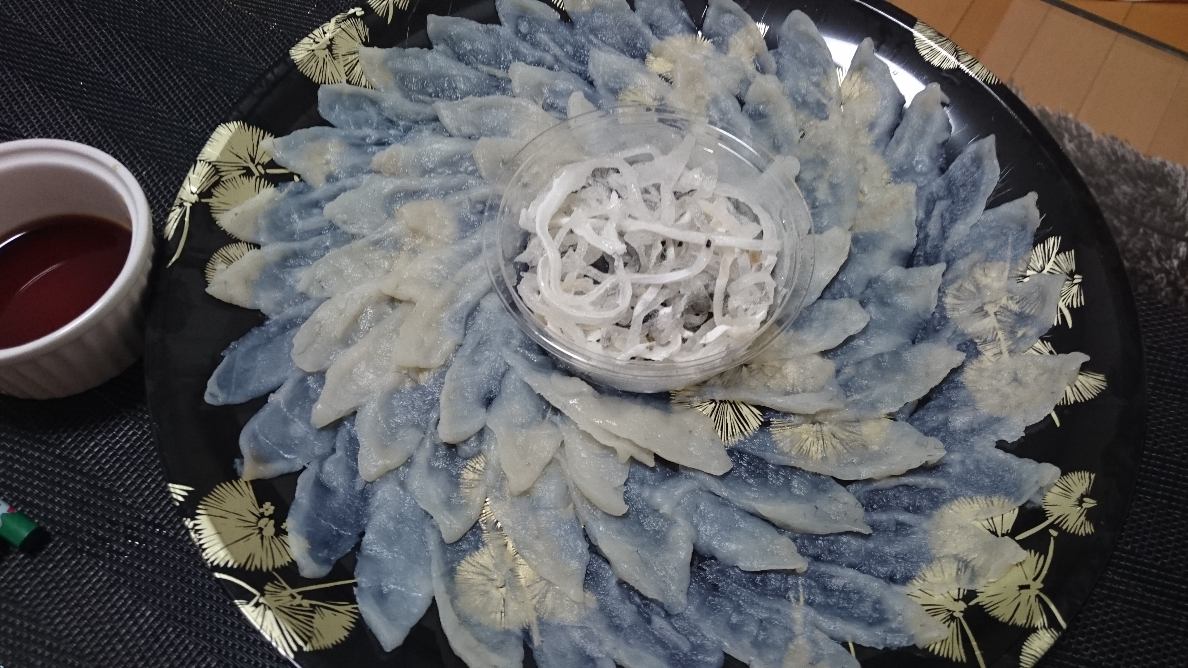 もう一皿はしゃぶしゃぶにして食べました。野菜を先に煮込んでフグはササっとくぐらせる程度で十分。お好みでゴマだれもいけますよ。辛いのがお好みの方はゴマだれにラー油を数滴たらすと、また格別です。