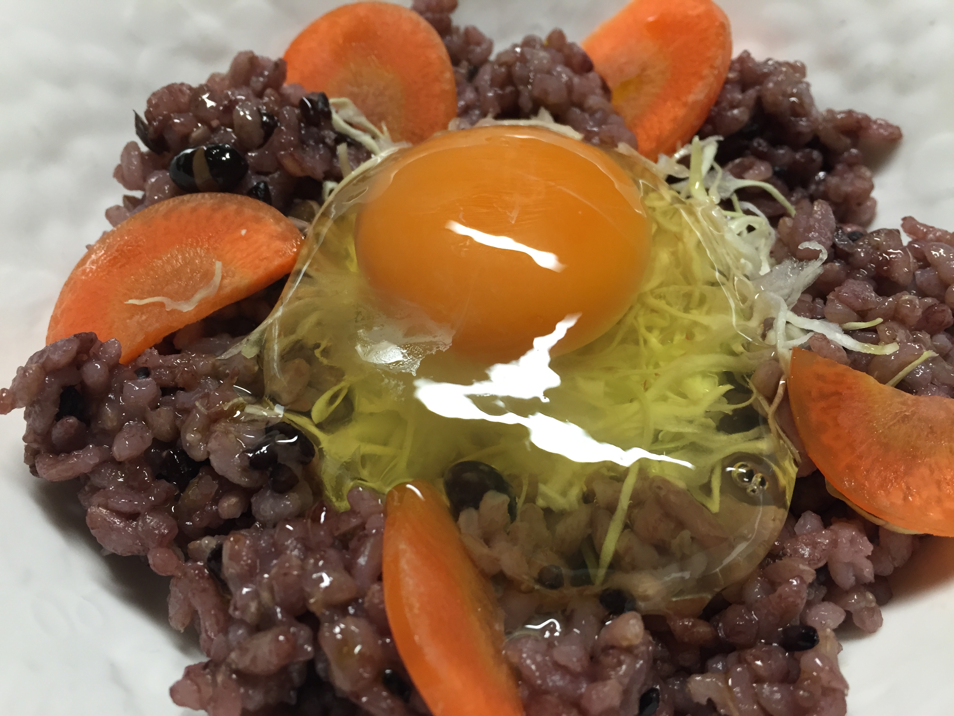 続いて、オススメの食べ方の半熟目玉焼きにしていただきます。卵のコクがアップしてこれまた美味しかったです。私はこのオススメの食べ方が好きです。