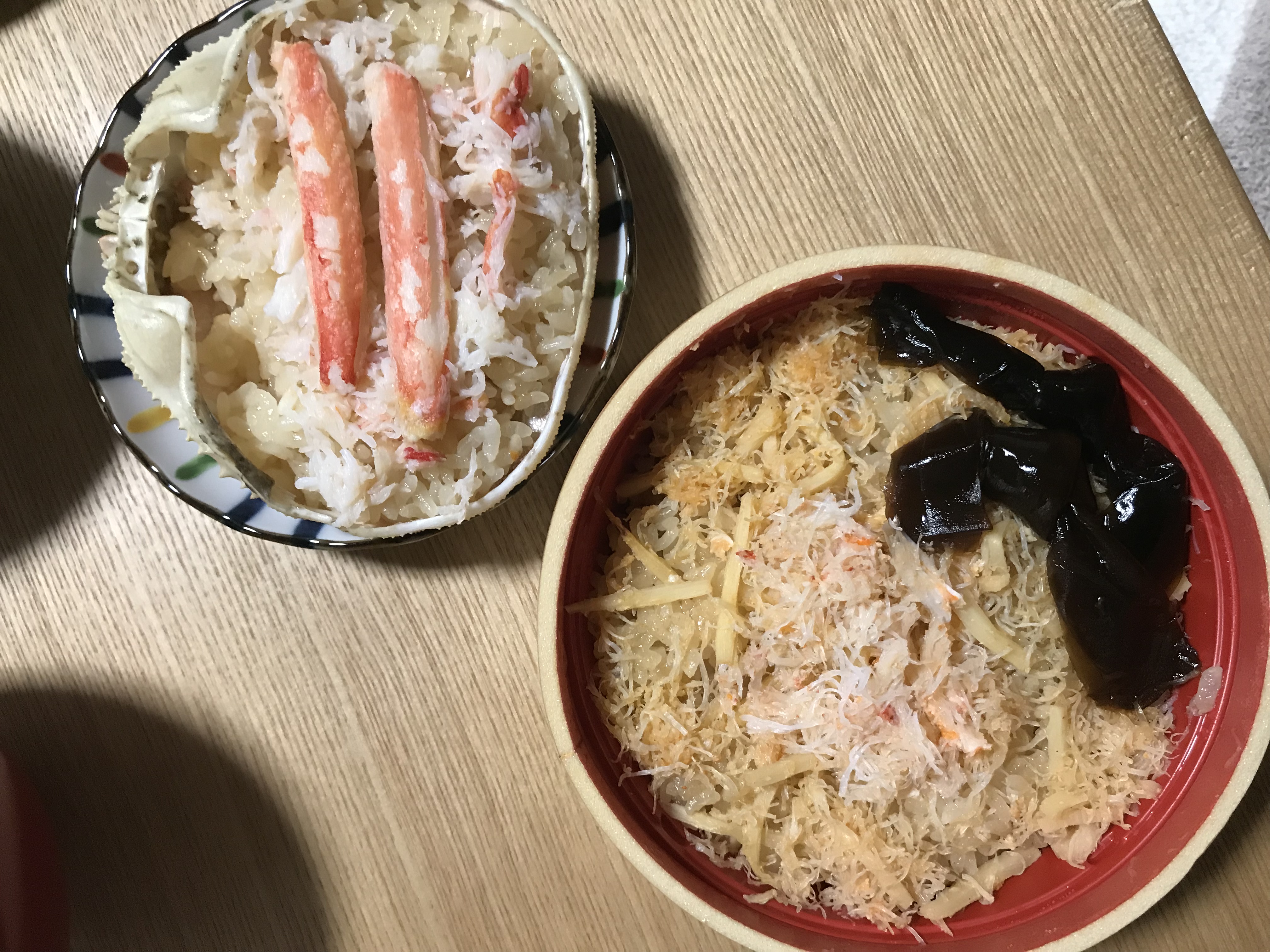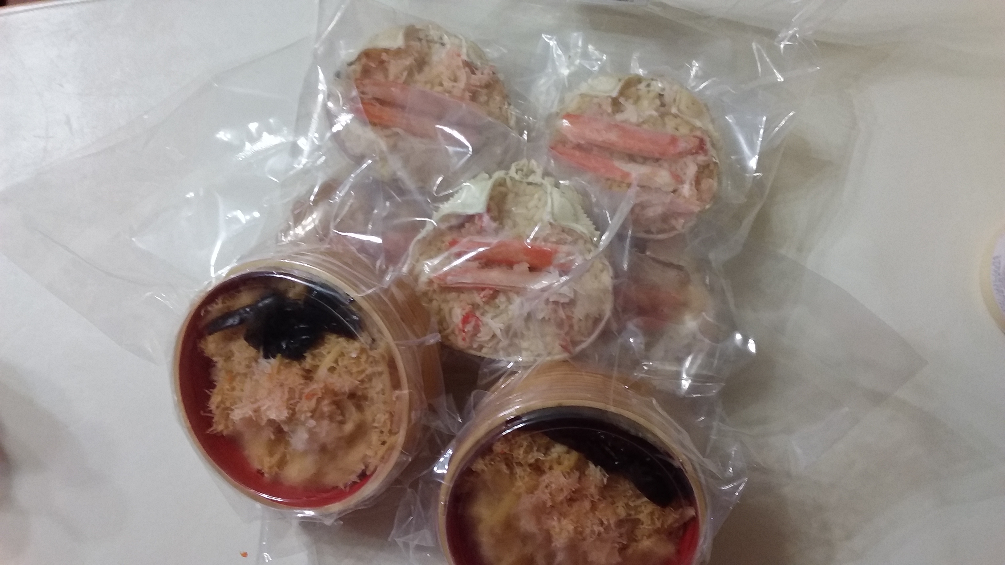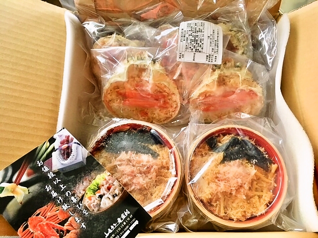 開けてみると、ズワイガニ飯が5個、毛ガニ飯が2個入っていました。
