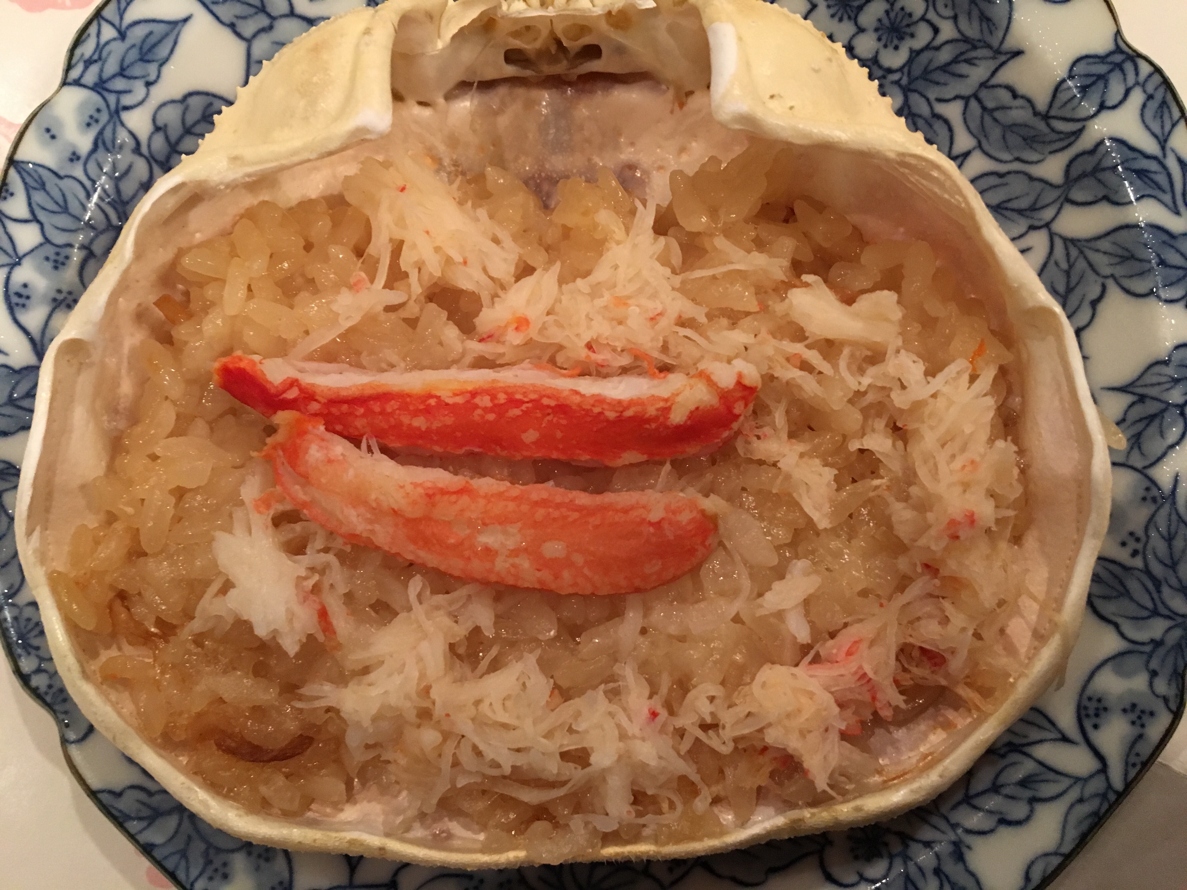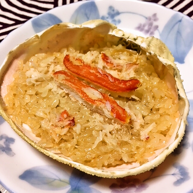 ズワイガニ飯は、カニの甲羅が器になっていて、高級感・贅沢感あり!