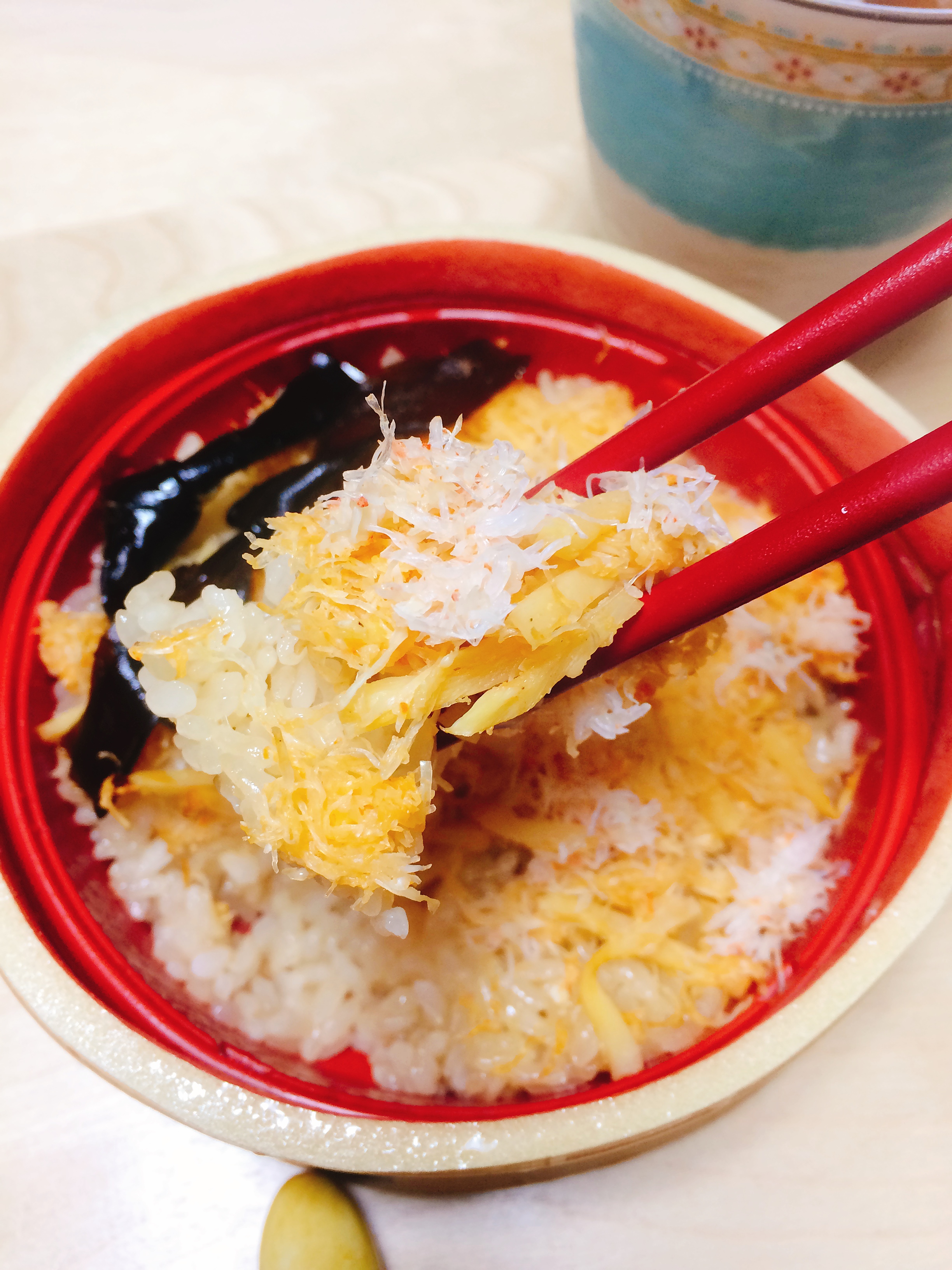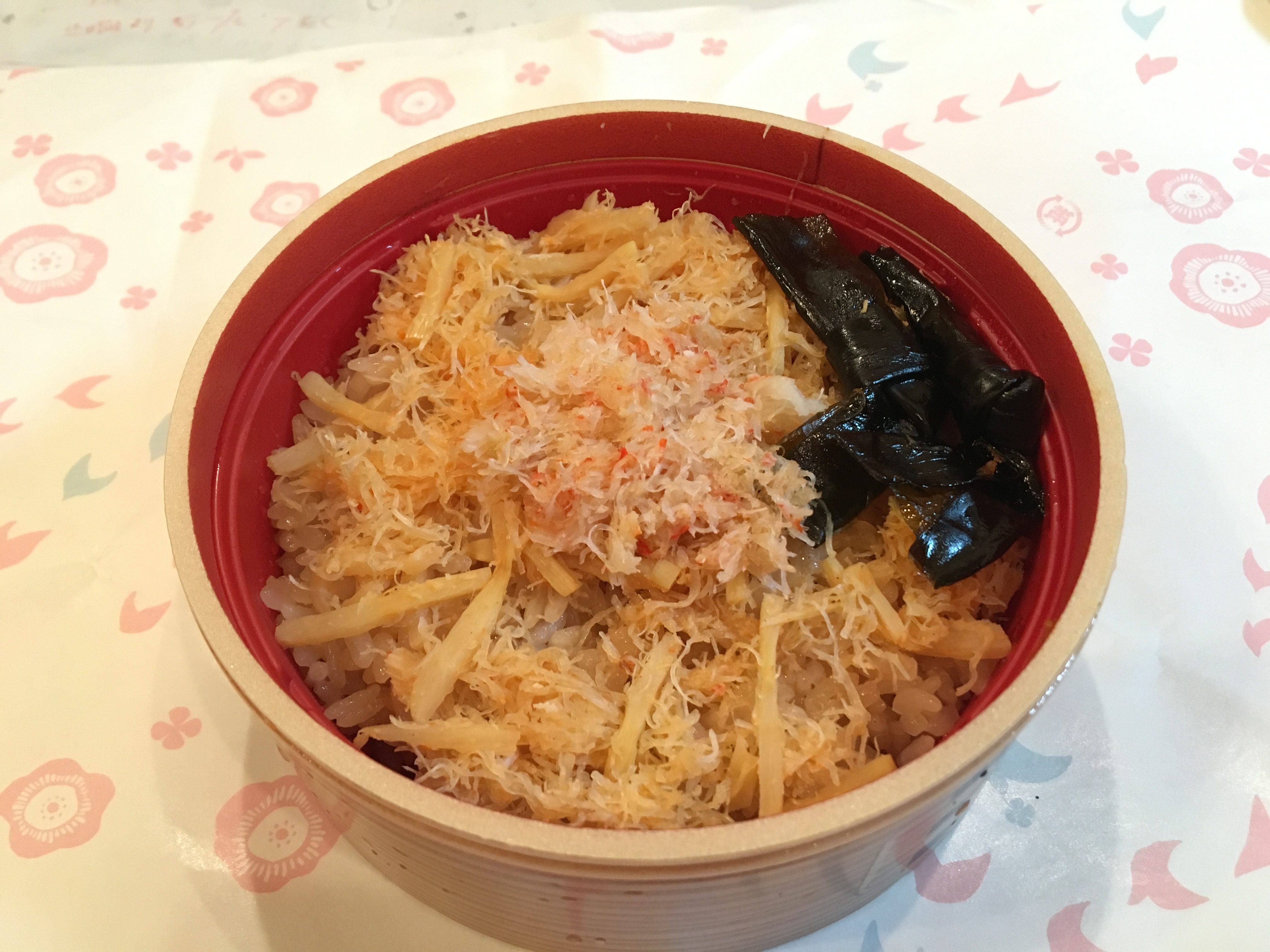 おこわにカニの味がよくしみこんでいて、旨みたっぷり!