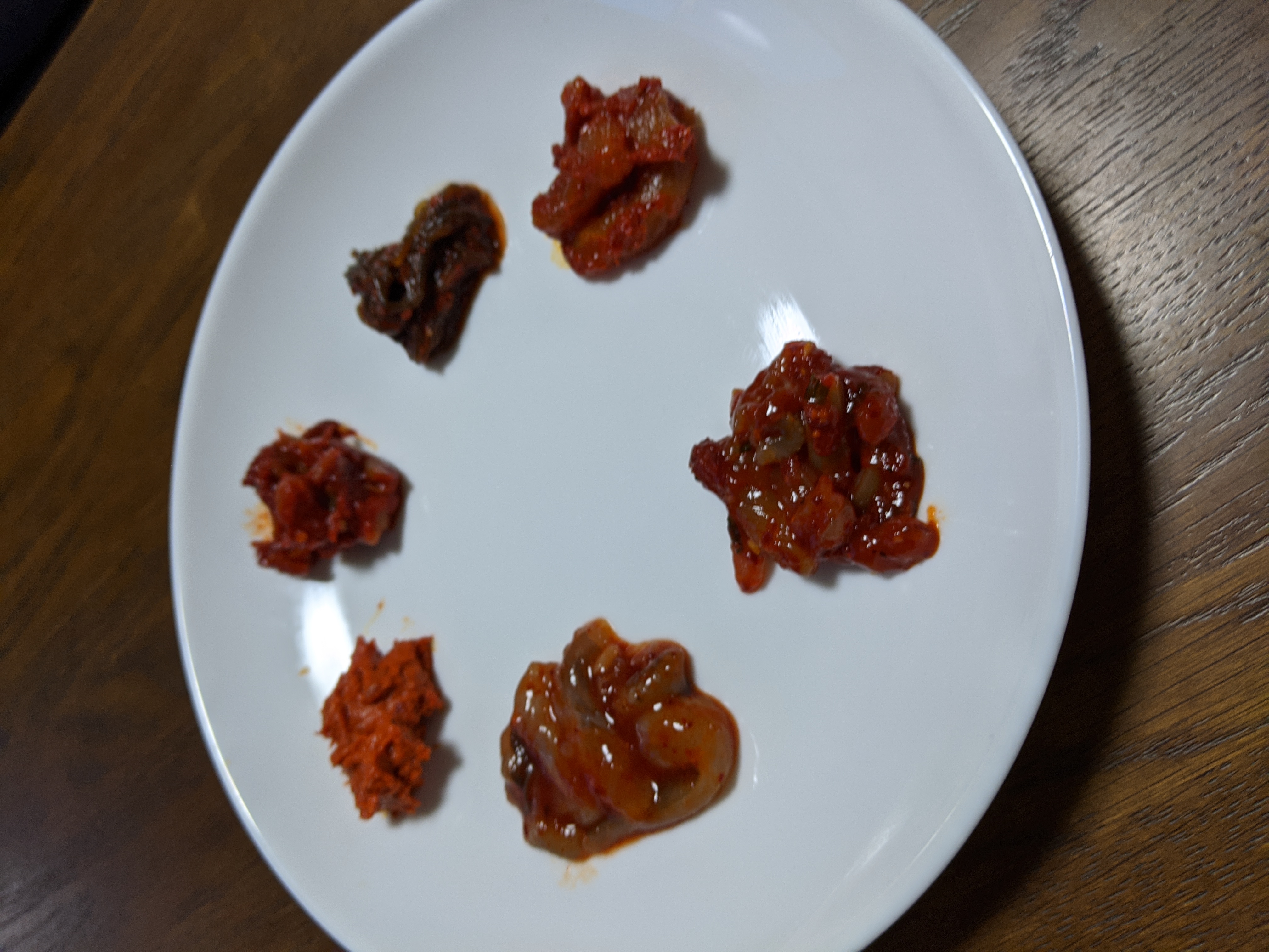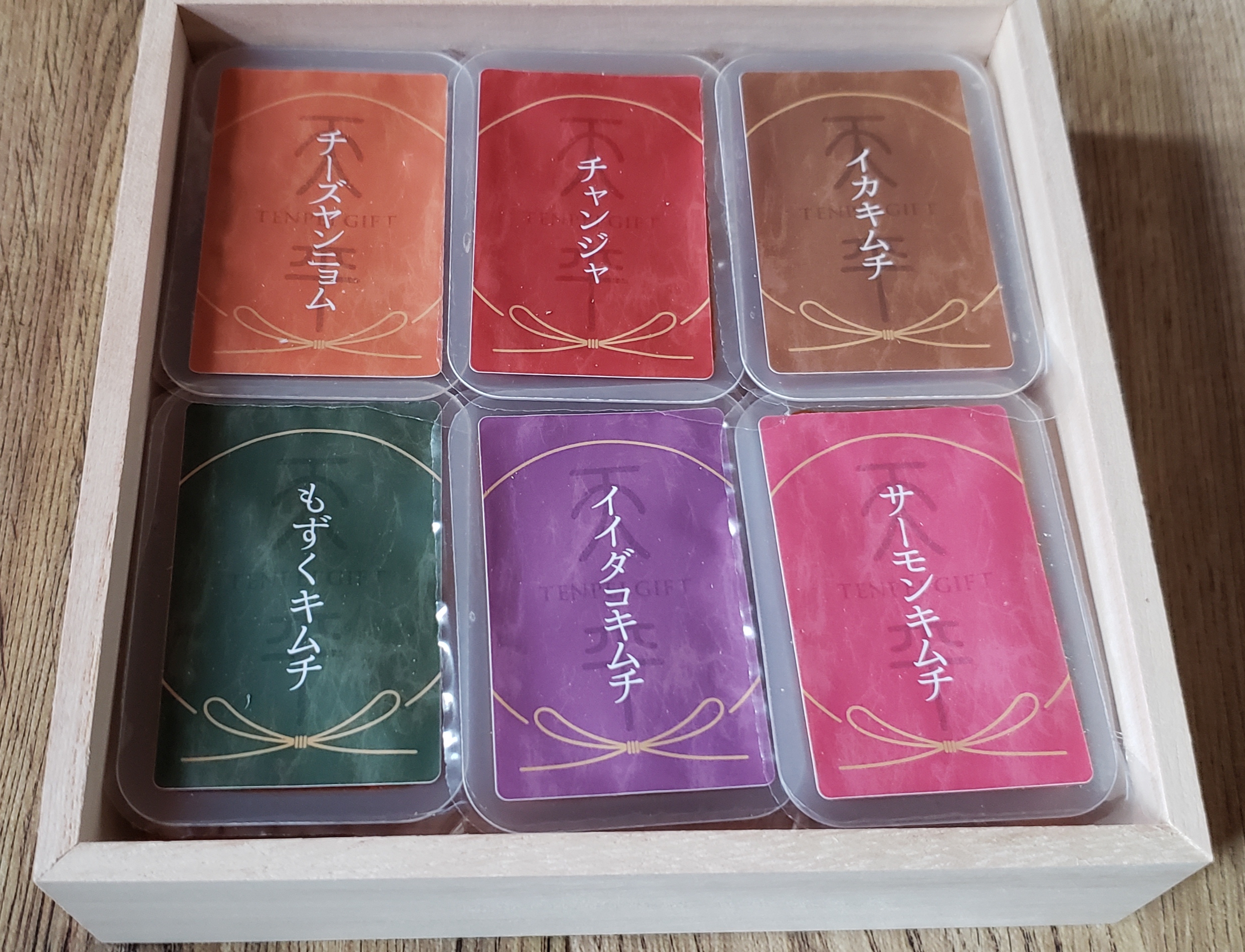 六つ、それぞれの個性が活かされきっていて、味・食感・舌触り・喉ごし、全て堪能できて素晴らしいです! キムチ好きには、満足感いっぱいで幸せになれるキムチです!私、キムチが大好きで色々食べてきましたが、見た目から楽しめて、こんなに旨味と辛味がぎゅっと凝縮されて上品に仕上げられたキムチ、初めて食べました!