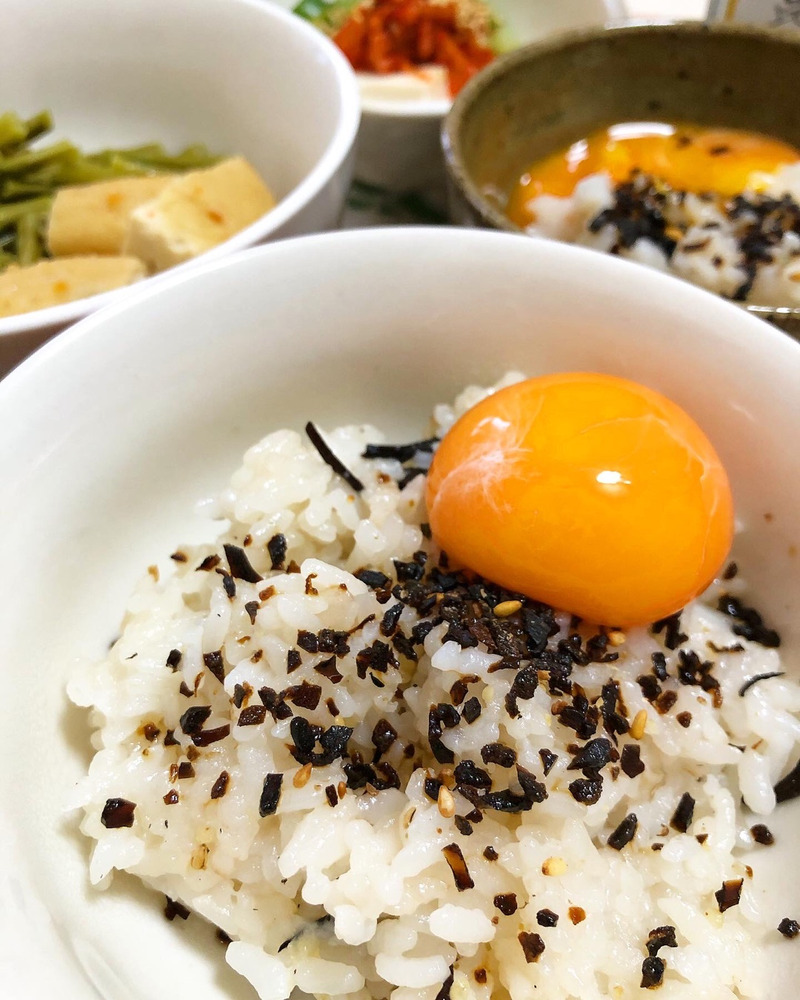下鴨茶寮の「がごめ昆布ふりかけ」と「下鴨昆布」を実際に試してみて、卵かけご飯との相性が抜群な「下鴨昆布」はご飯の上でしっとりと温められることで昆布の香りが引き立ち、元は淡白な卵かけご飯の味に深みが増しているのが感じられました。旨みが強く、まさに料亭のお味といえる納得の美味しさです。醤油で炊き上げられているため、濃厚な旨味があり、ご飯と卵と絶妙に絡んでいました。