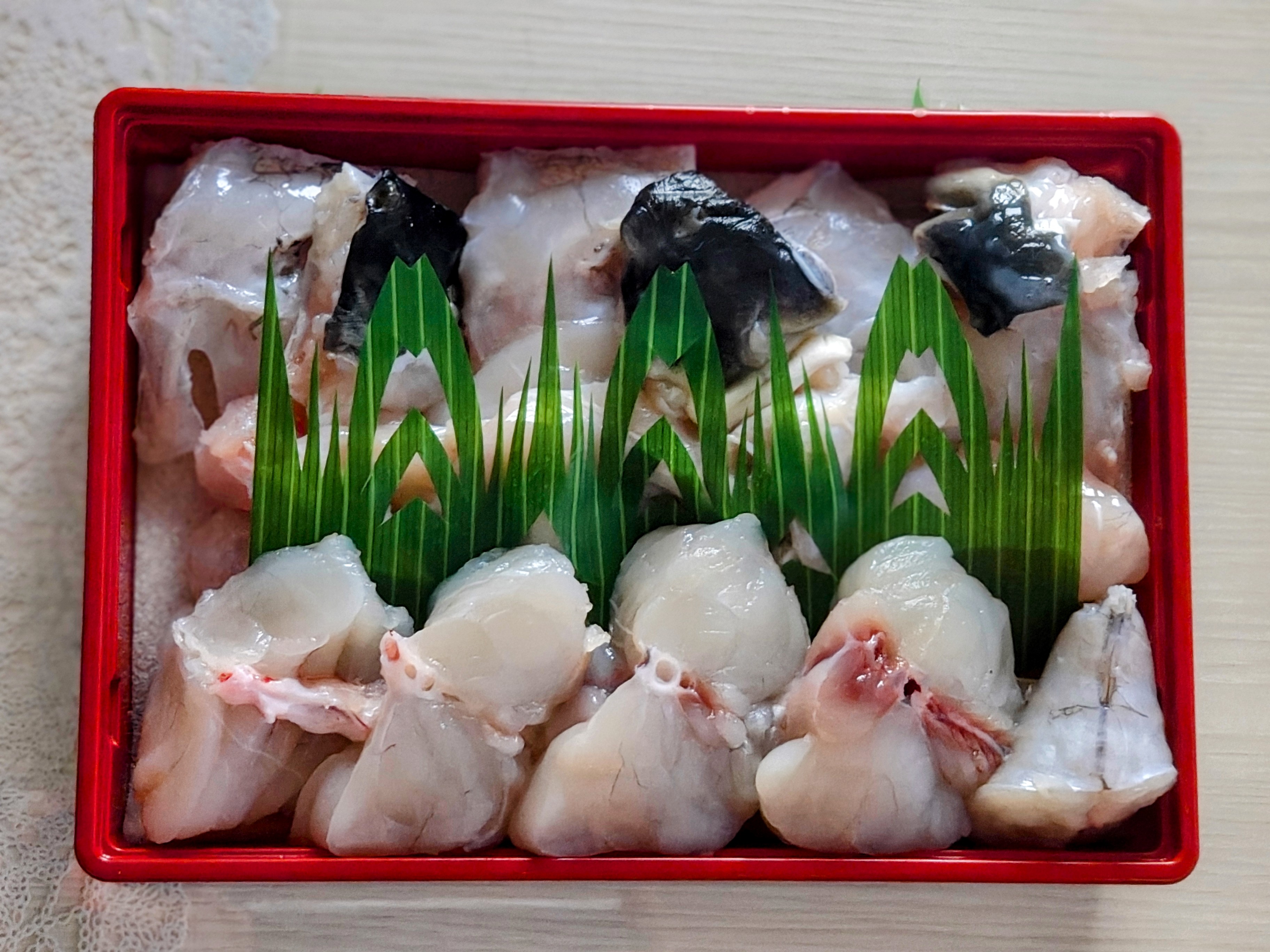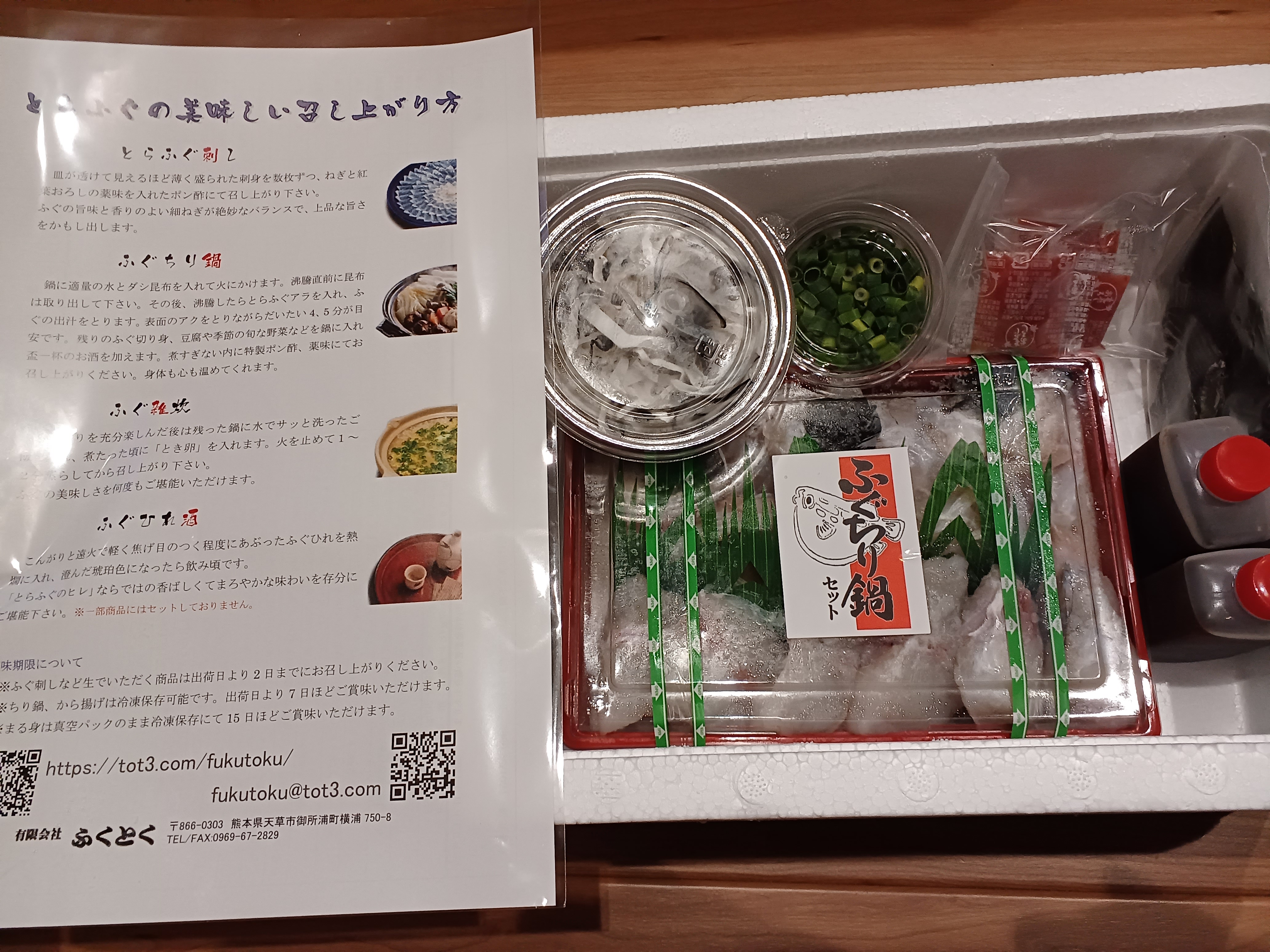 さらに、コラーゲンたっぷりのふぐ皮はぷるぷるコリコリとした食感が楽しく、特製ポン酢でさっぱりといただけました。炙ったふぐヒレを使ったヒレ酒も、香ばしさと旨味が際立ちとても美味しかったです。手軽に本格的なふぐ料理を楽しめる、満足度の高いセットでした。
