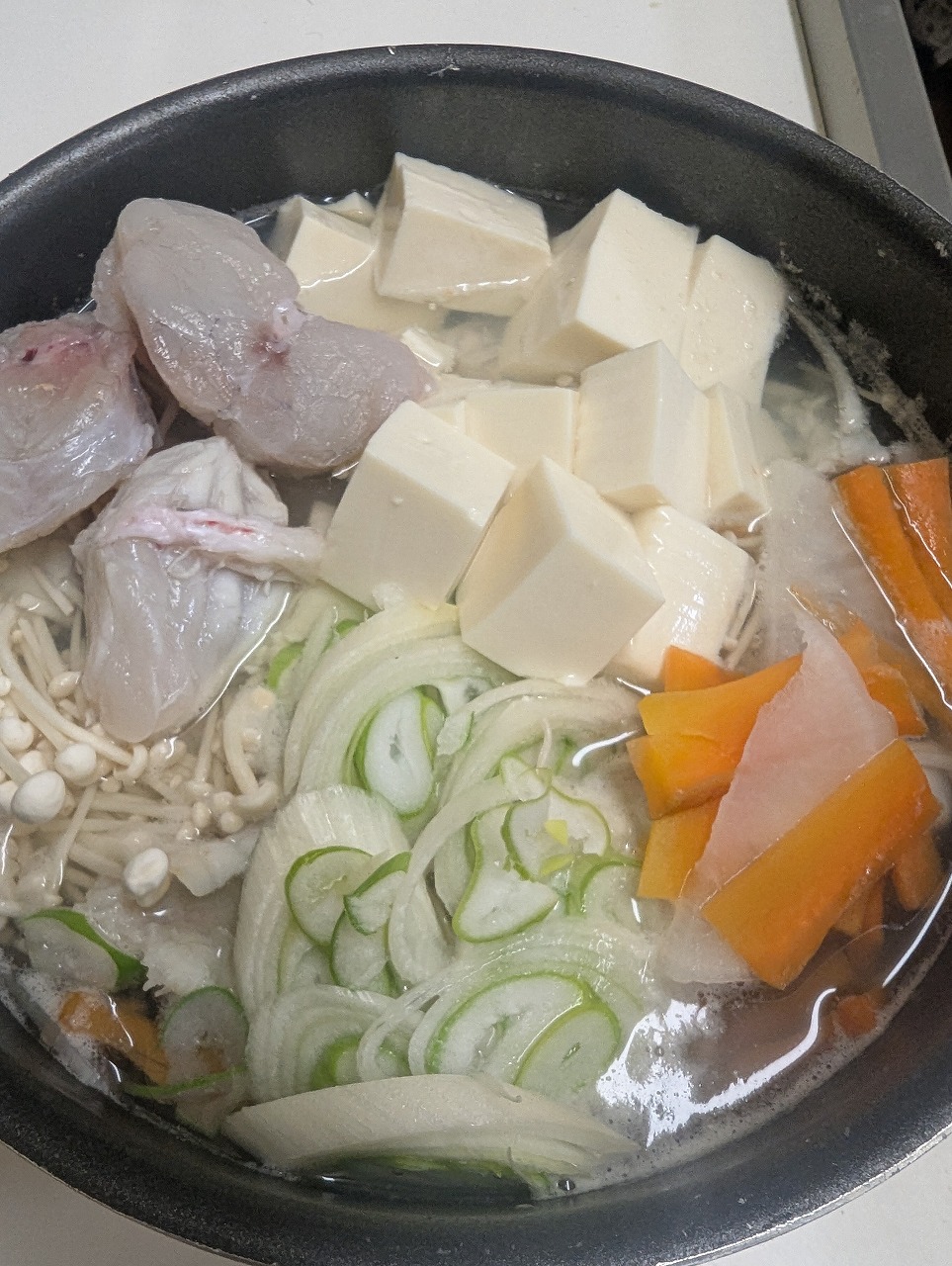 旬の野菜をご準備いただき、ふぐの切り身火にかけるだけで美味しくいただけます。