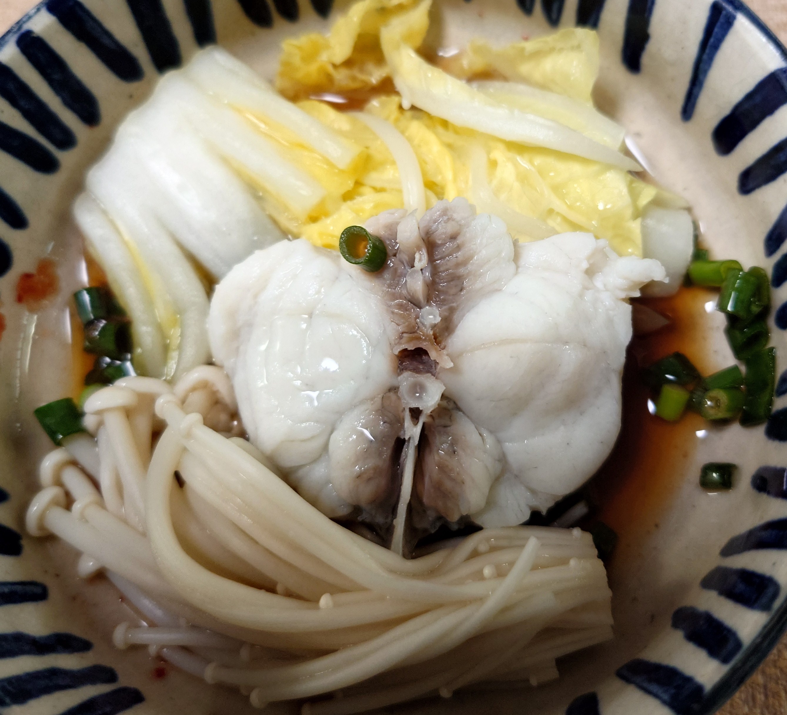 ブクの身と野菜を食べ終わった後のお出汁は、とろみが出ていてビックリしました。