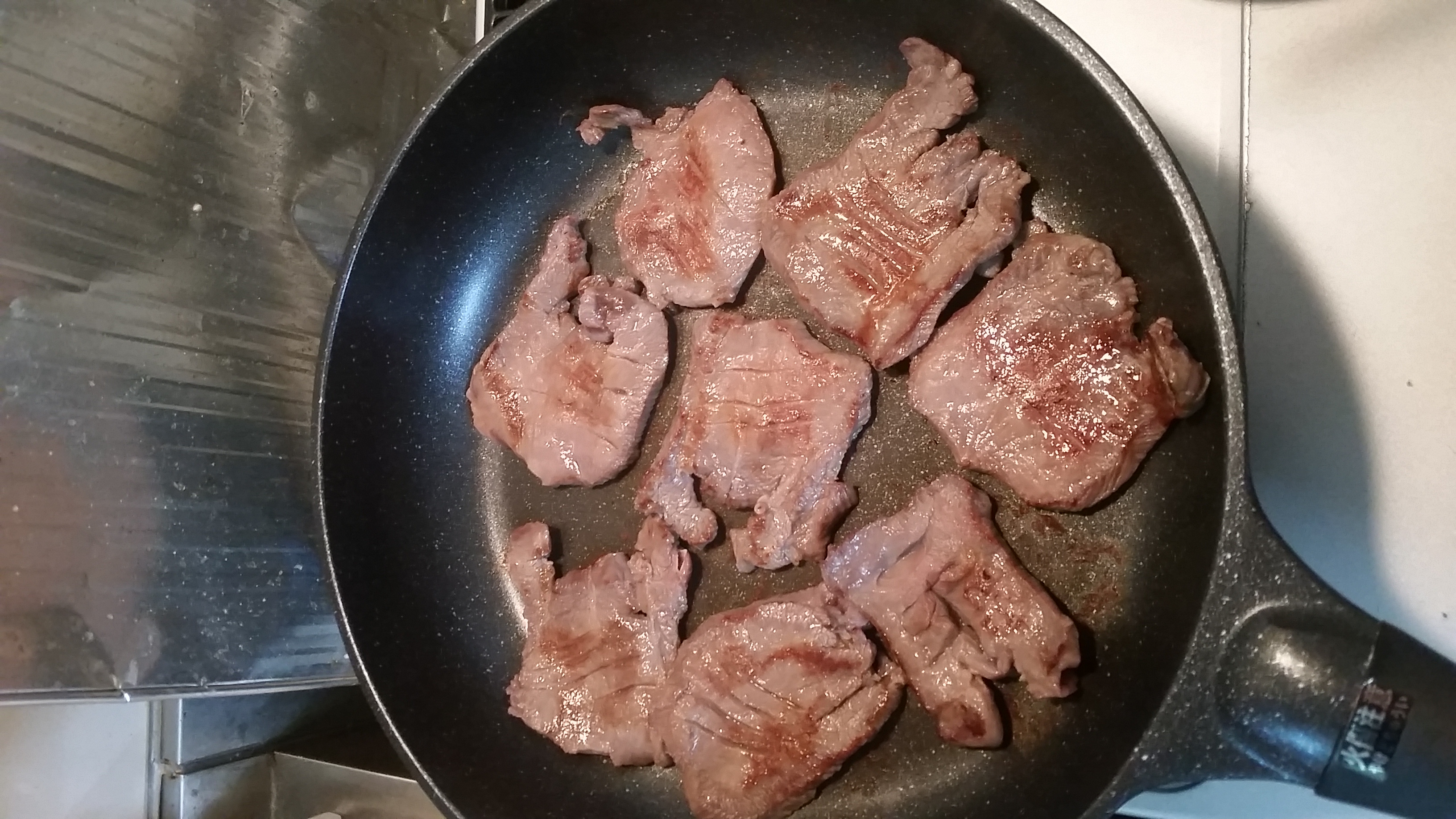 料理も味付け牛タンなのでフライパンで両面を軽く焦げ目が付く程度に焼くだけで余計な手間いらずで簡単(ご丁寧に焼き方の説明書き有り)。