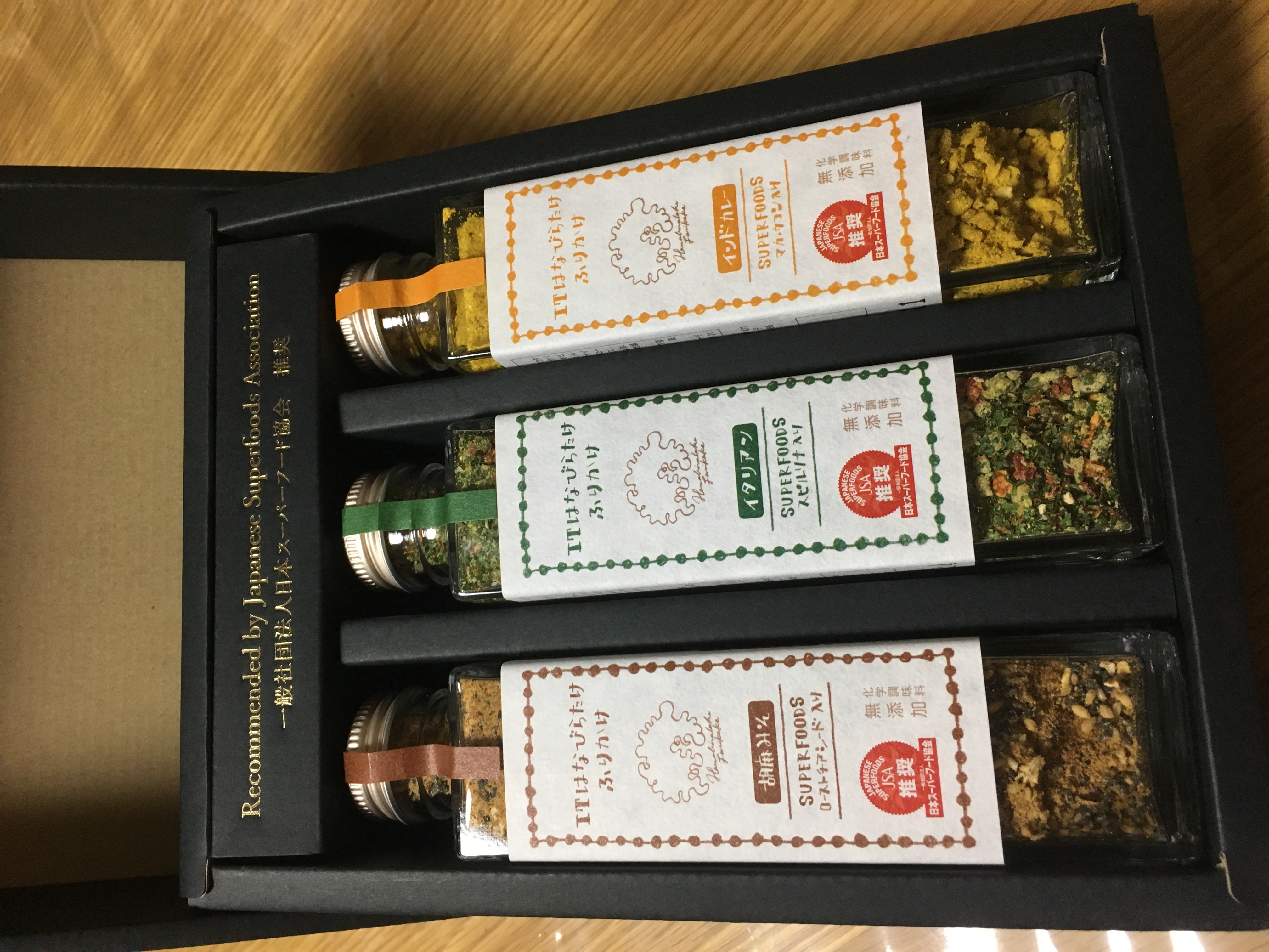 「一般社団法人日本スーパーフード協会推奨」の表記が金箔で刻印された専用ギフトボックスに入って届きます。