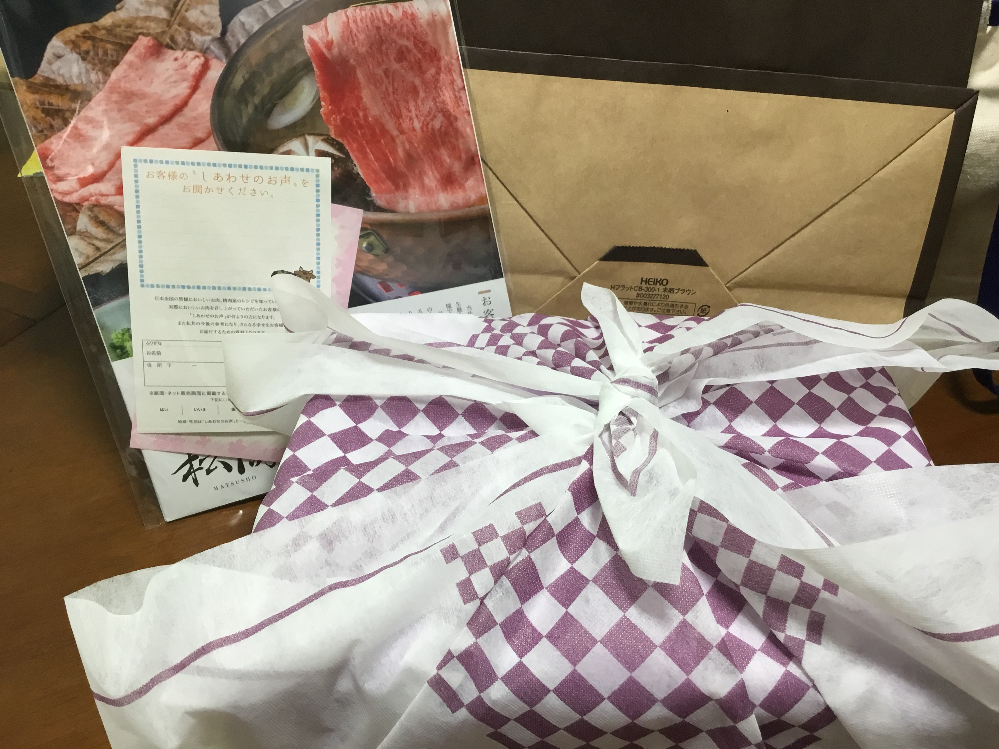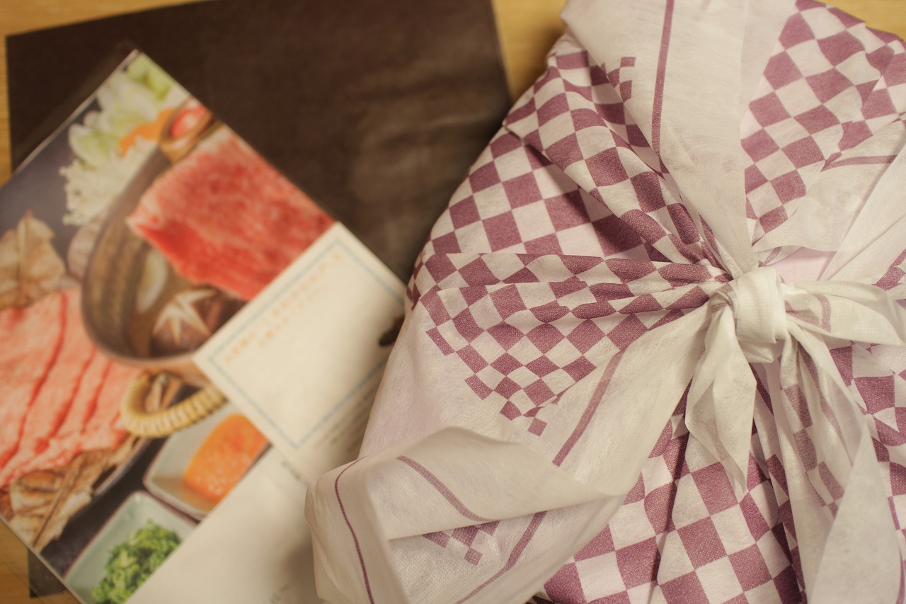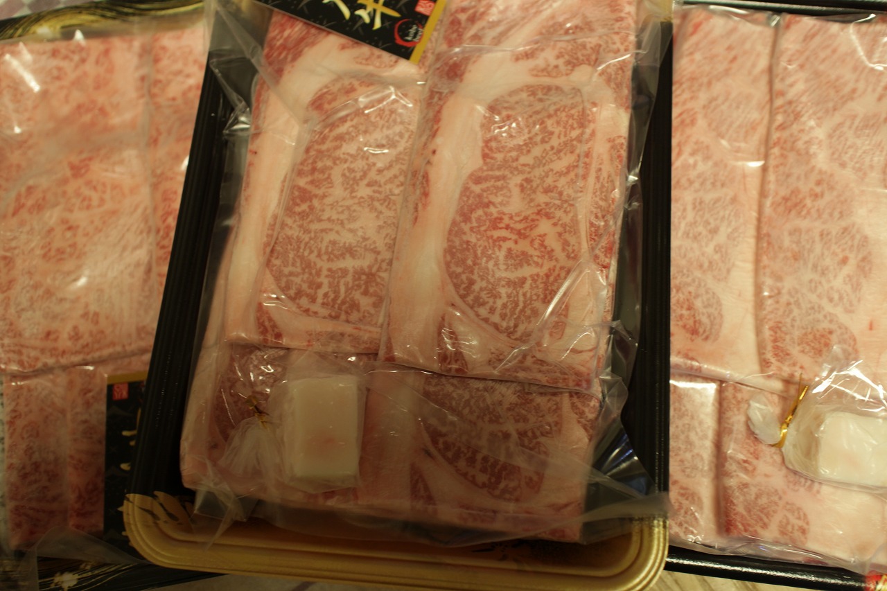 箱を開けると立派な包みに入っており高級感が漂っていました。しかし勝手に包みが風呂敷かと思っていたのと、お肉の入っている箱がHPの写真では桐の箱のようなものだったのにこちらは紙製の箱だったので少し残念でした。