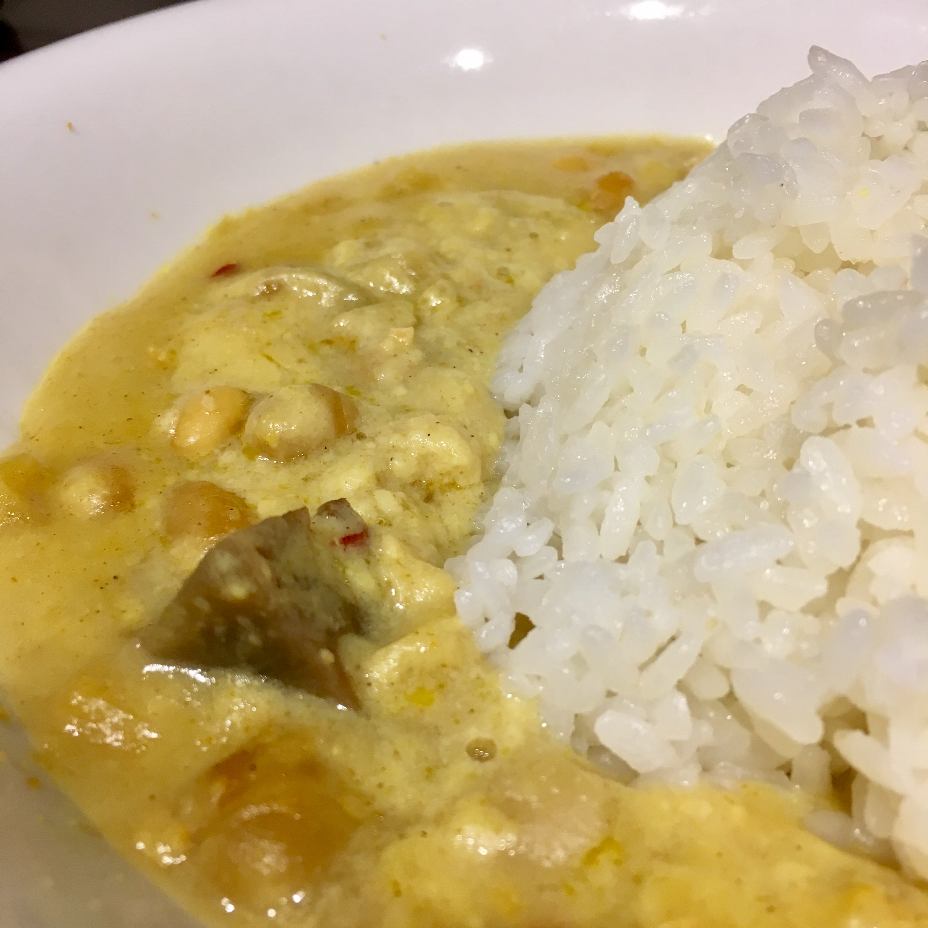 ちゃんと辛い!中辛とありますがしっかりとしたカレーの辛さと酒粕の風味もありつつ、ごろっとした根菜と大豆の食感があり食べごたえがありました、食後の匂いを考えず食べれるカレーは素晴らしい!