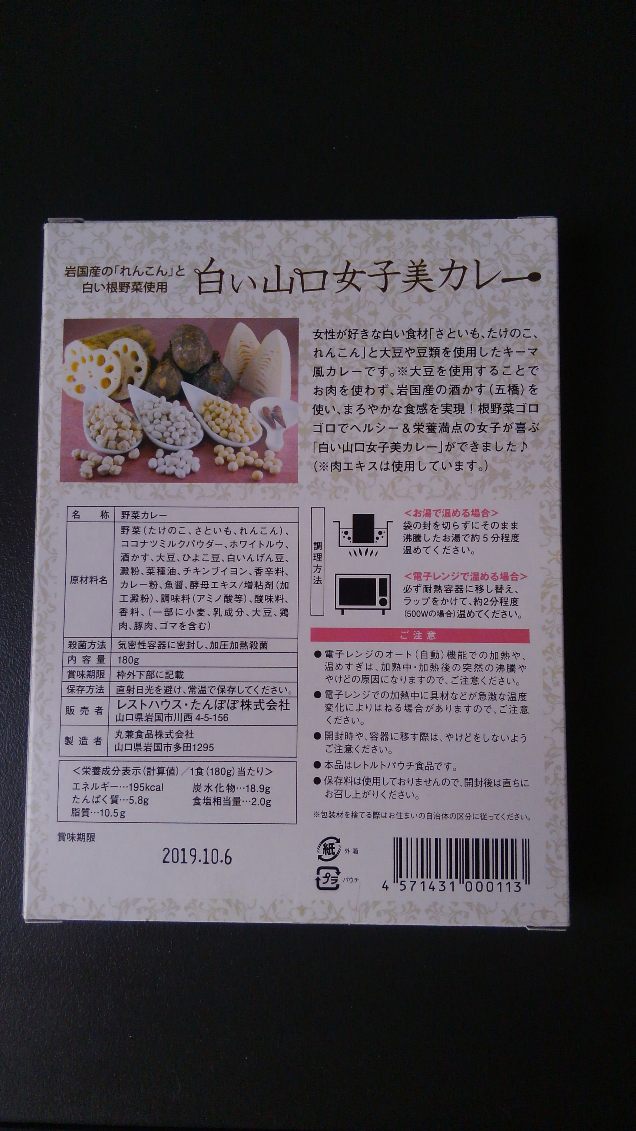 女性の美と健康を応援するご当地カレー。山口県岩国産の「れんこん」と白い根野菜を使用しています。