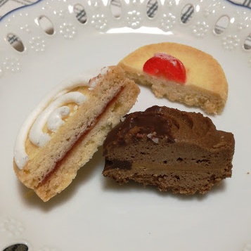 上にチョコレートがコーティングされたサンドクッキーで、ボリュームがありました。