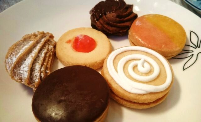 ストロベリージャムがサンドされたおしゃれなクッキー、さっぱりとしたお味です。