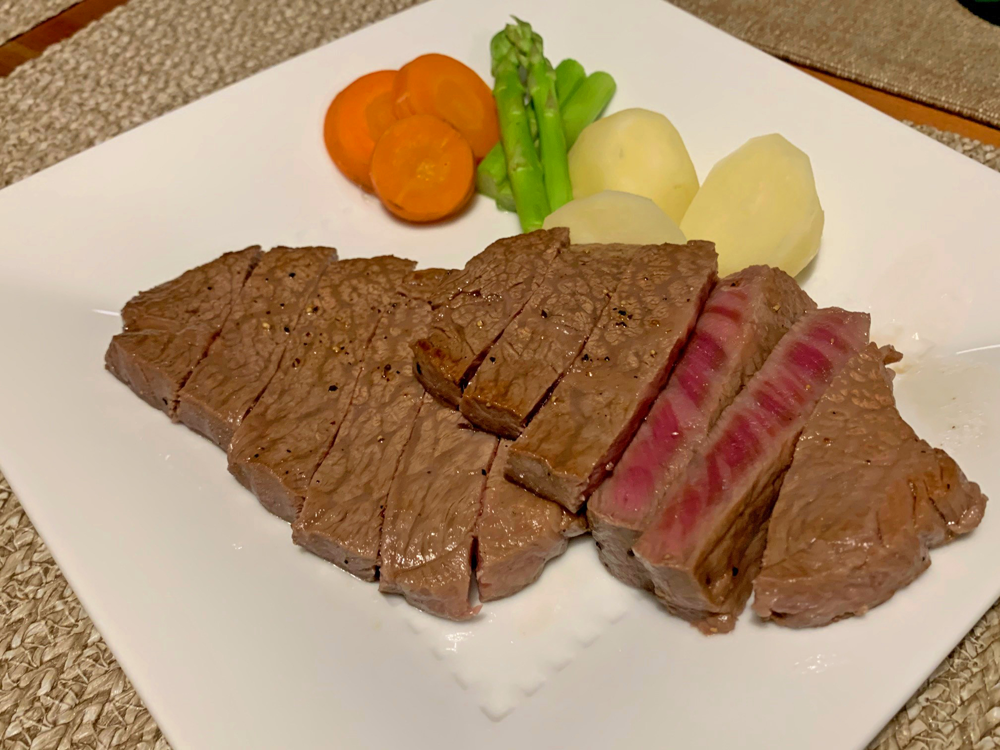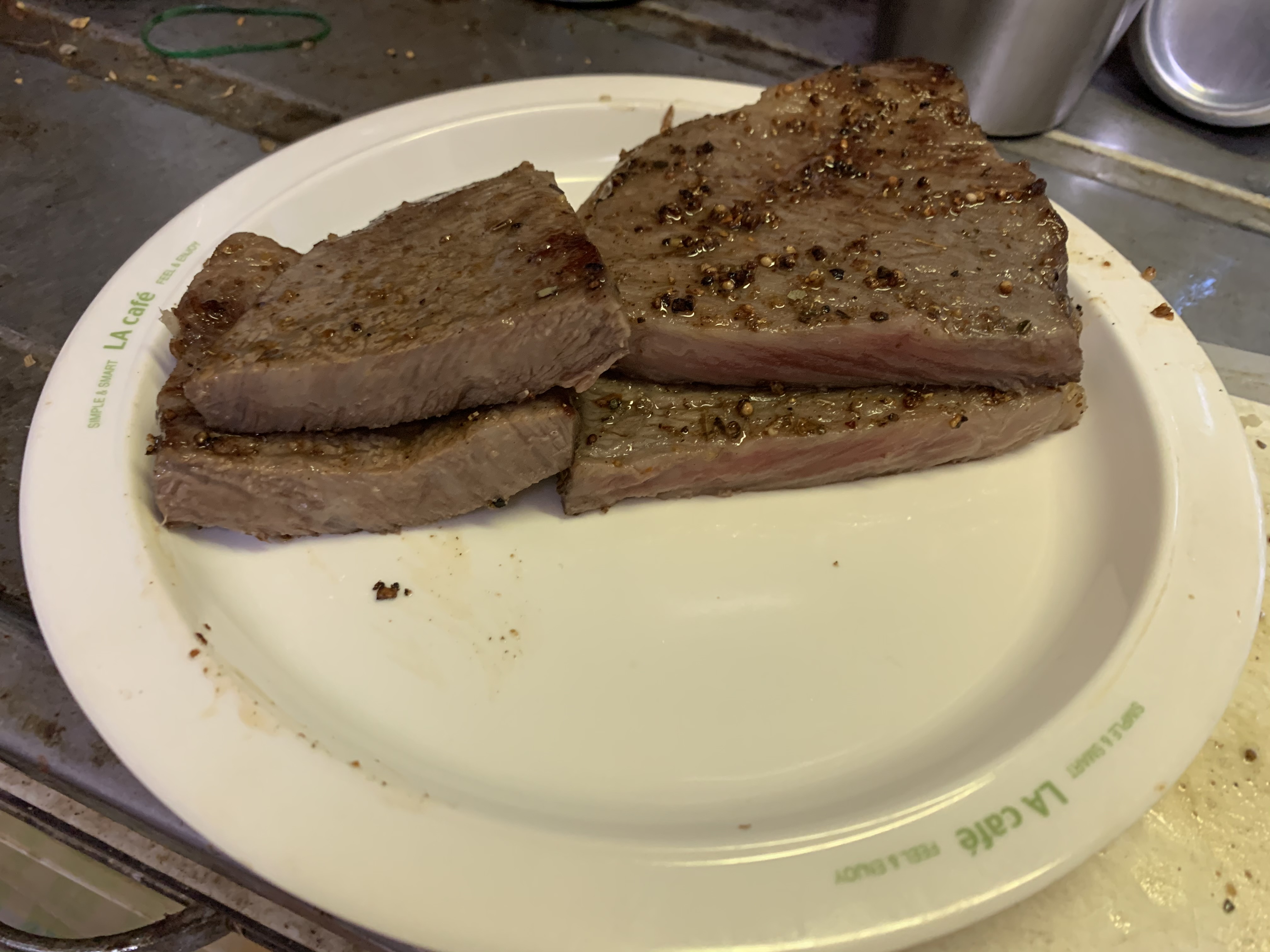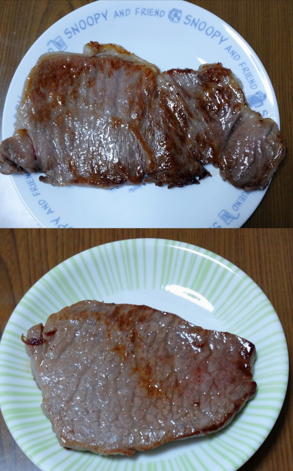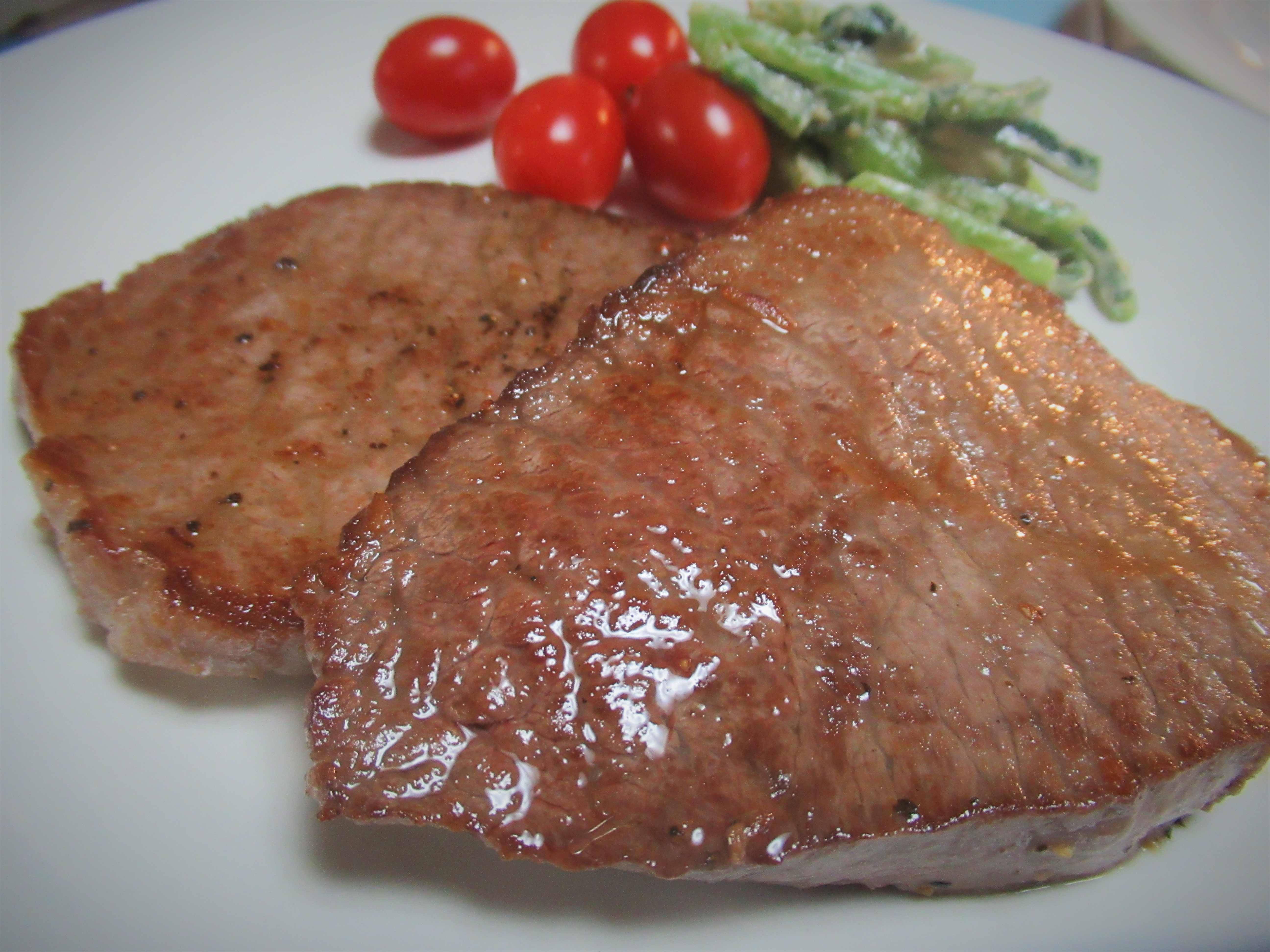 折角のステーキ食べ比べセットですので、そのまま塩・コショウだけでお肉の味・柔らかさの違いをお楽しみ下さい。