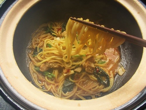 ③最後のシメはスープにちゃんぽん麺を入れて担々麺風でお楽しみください。