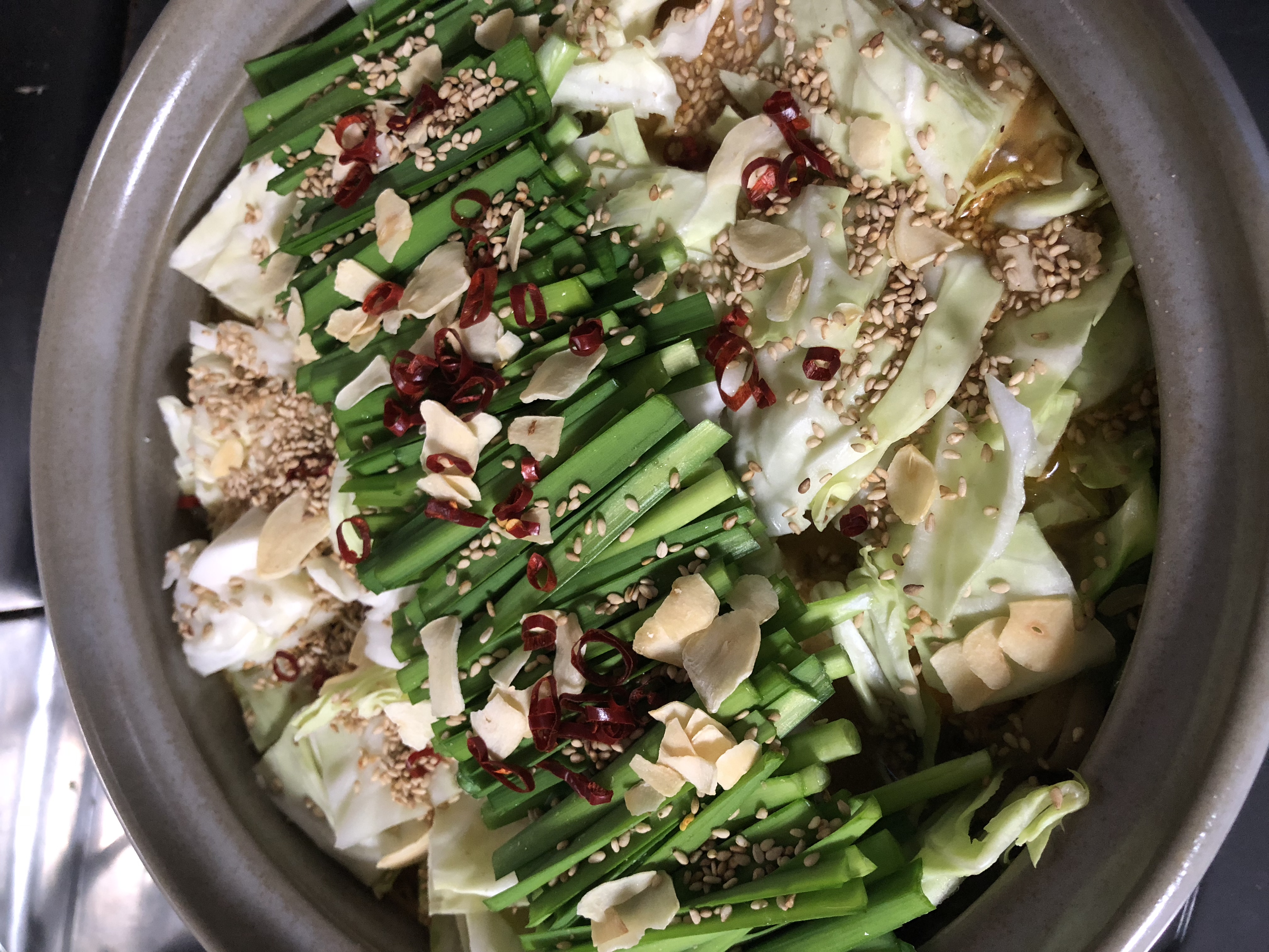 もつ鍋のお野菜は「キャベツ」と「ニラ」が基本。