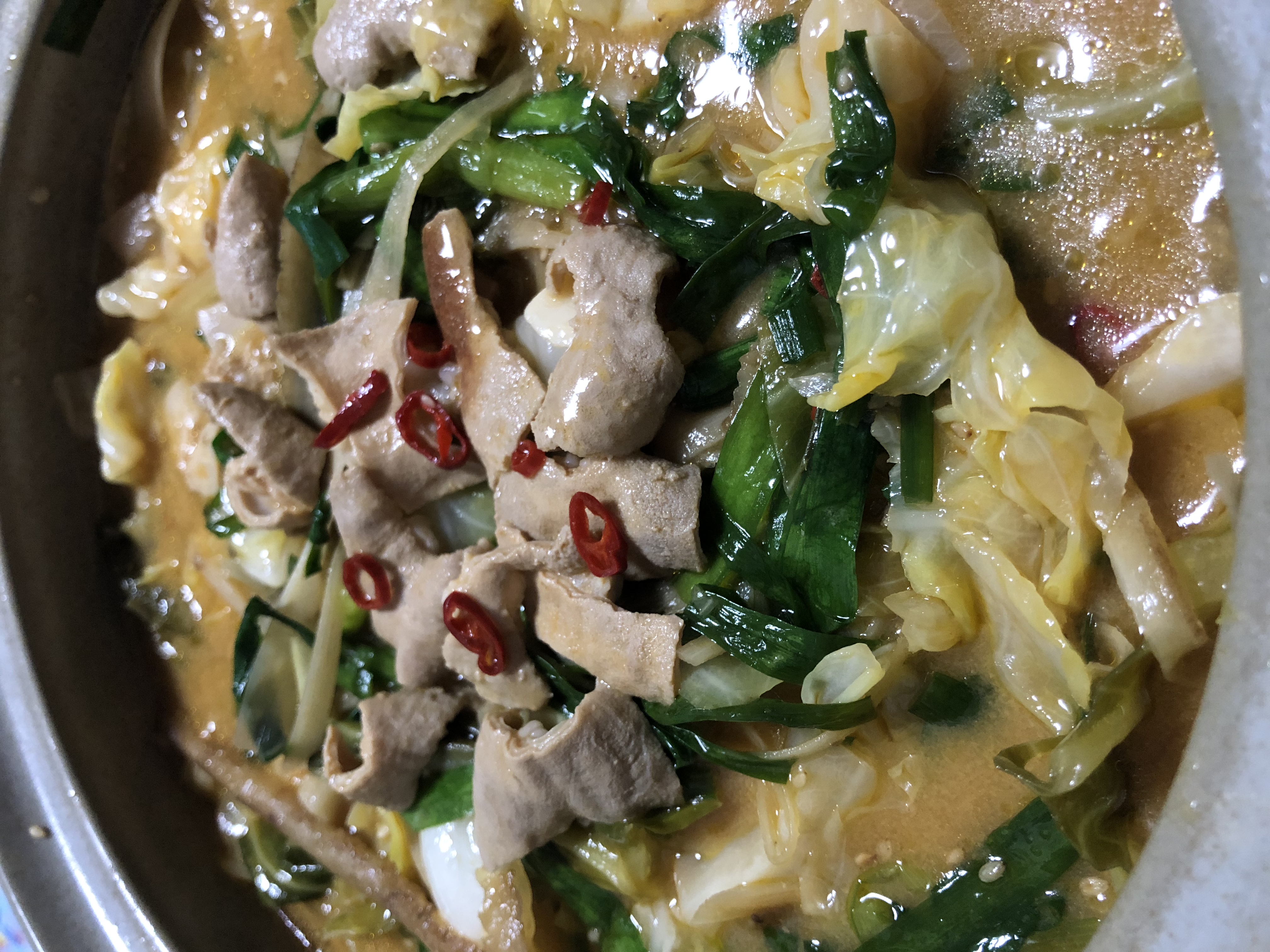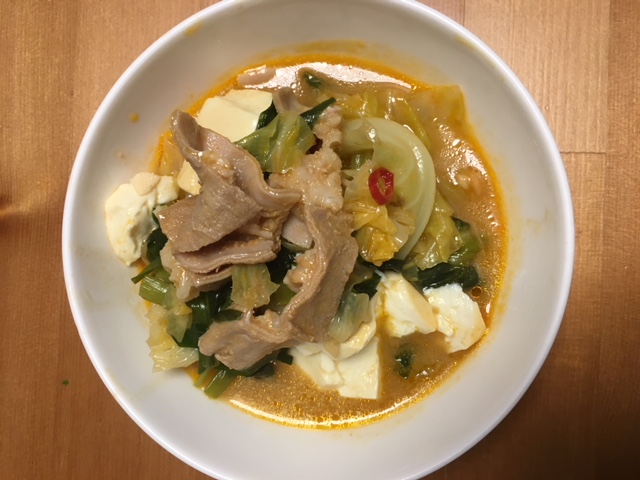スープのコクにもつの旨味が染み出て、スープも残したくなくなる美味しさで、ごはんもどんどんすすみました。
