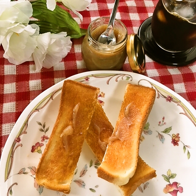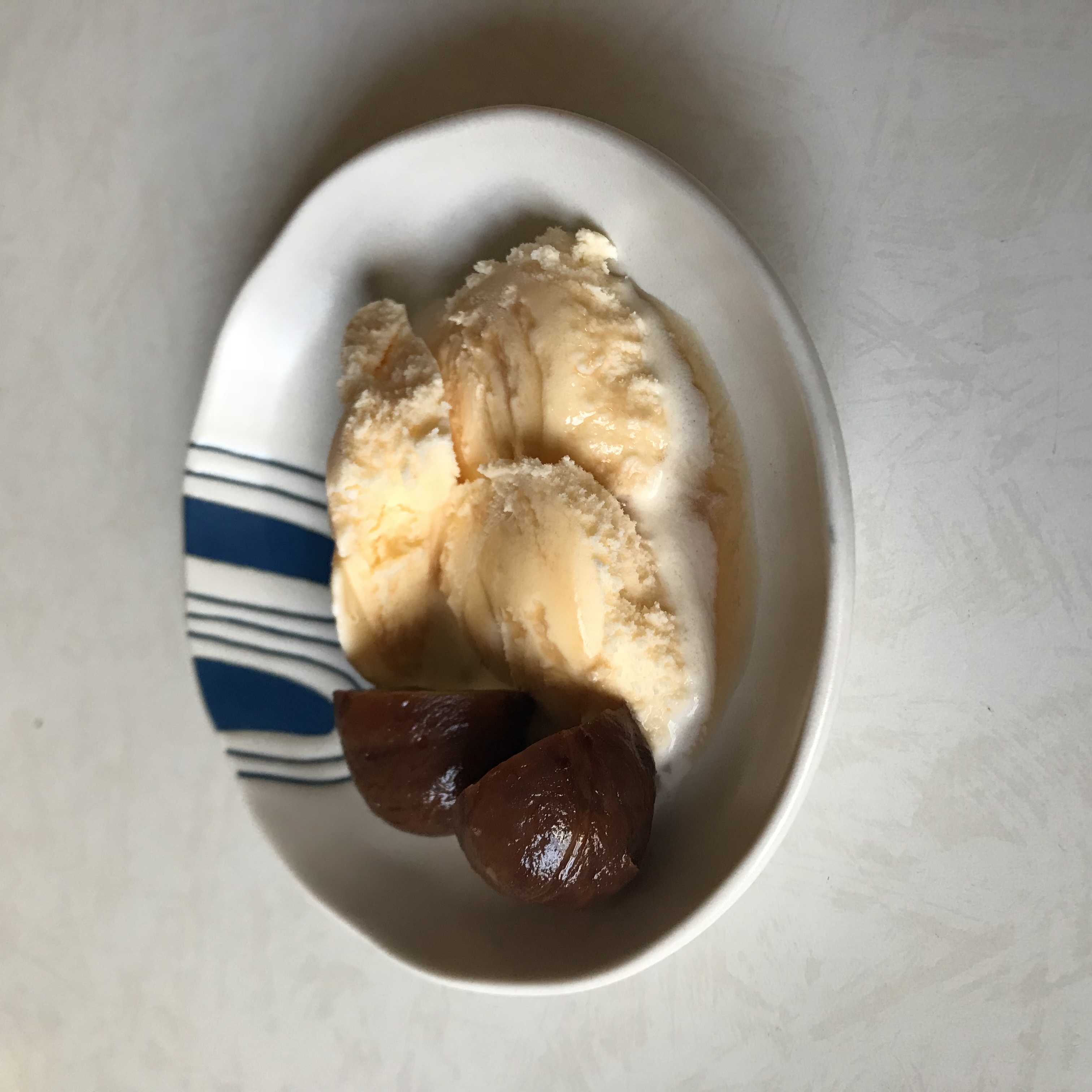 カタログによると、自然栗は熊本県産の無燻蒸の和栗を砂糖だけで炊き上げた渋皮煮でそのままおやつに、マロンブランテが自然栗を紅茶とブランデーに付け込んでいて珈琲、紅茶、お酒のおつまみに、今宵のマロンバターはペースト状の蒸し栗をバターと合わせたもので、トーストやアイスクリームやパンケーキに合わせて、と書かれていたので、さっそくおすすめの食べ方でいただきます。