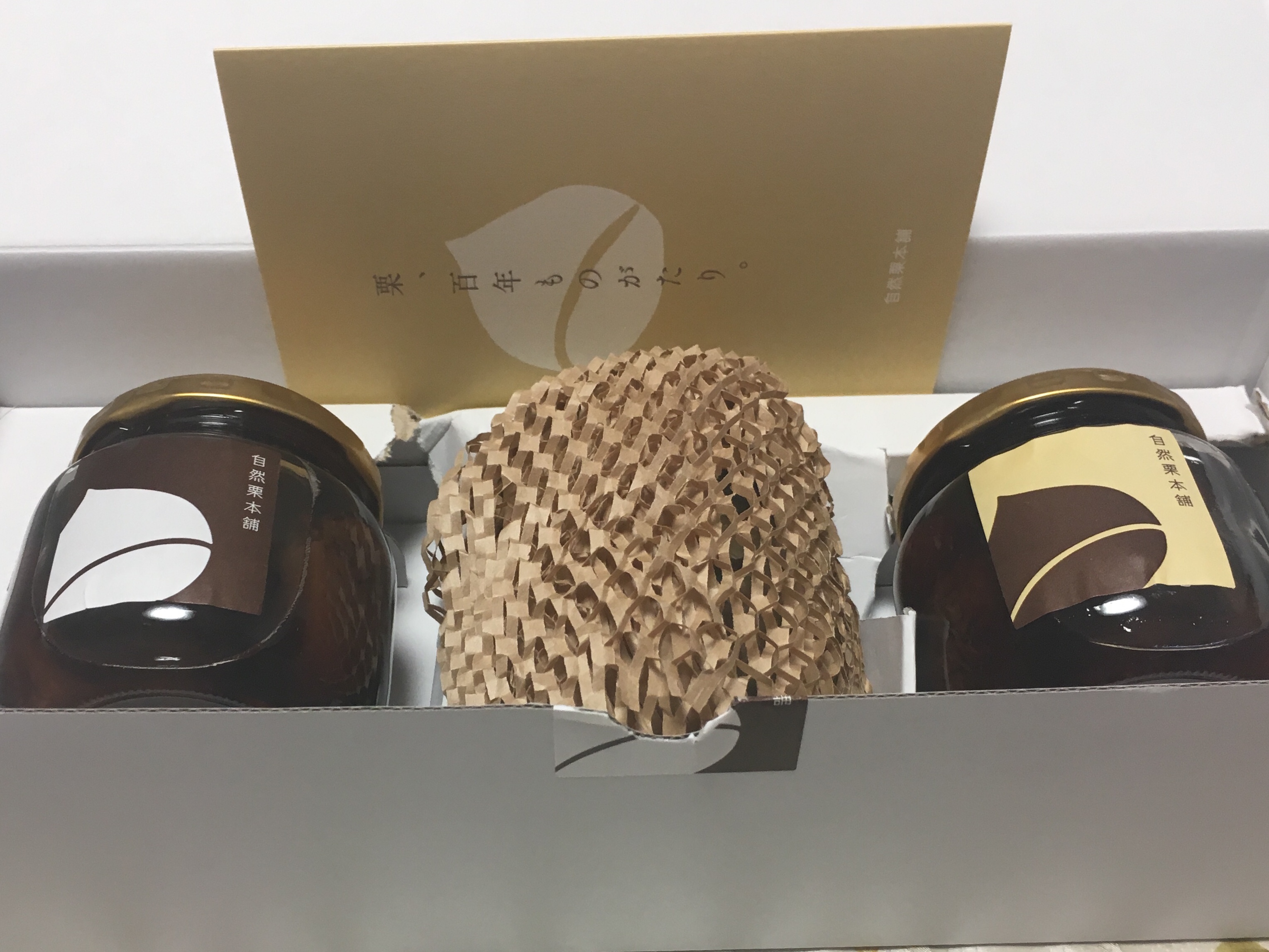 すごく大きな栗がビンの中にゴロゴロ入っていて、見た目にも豪華です。