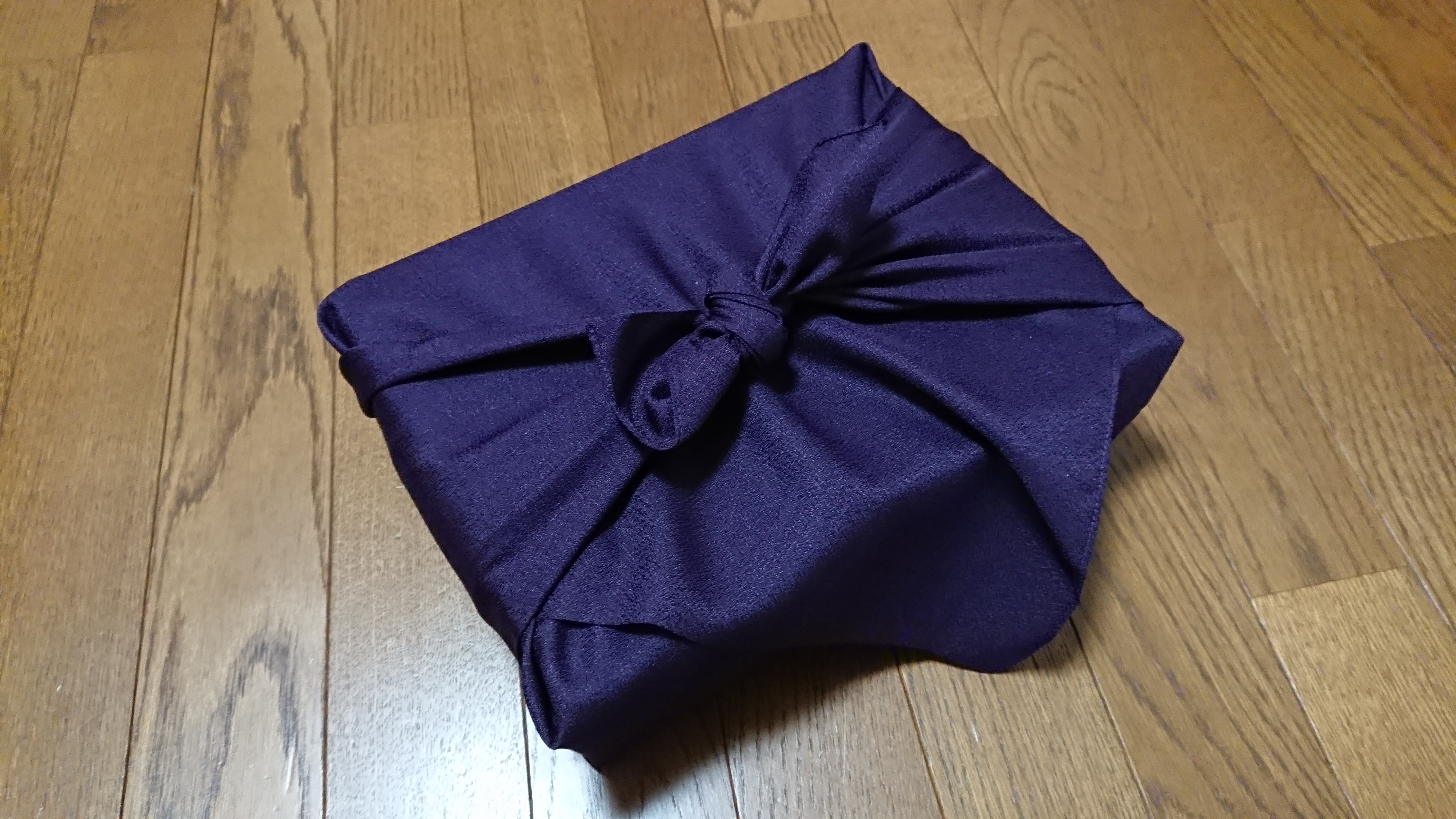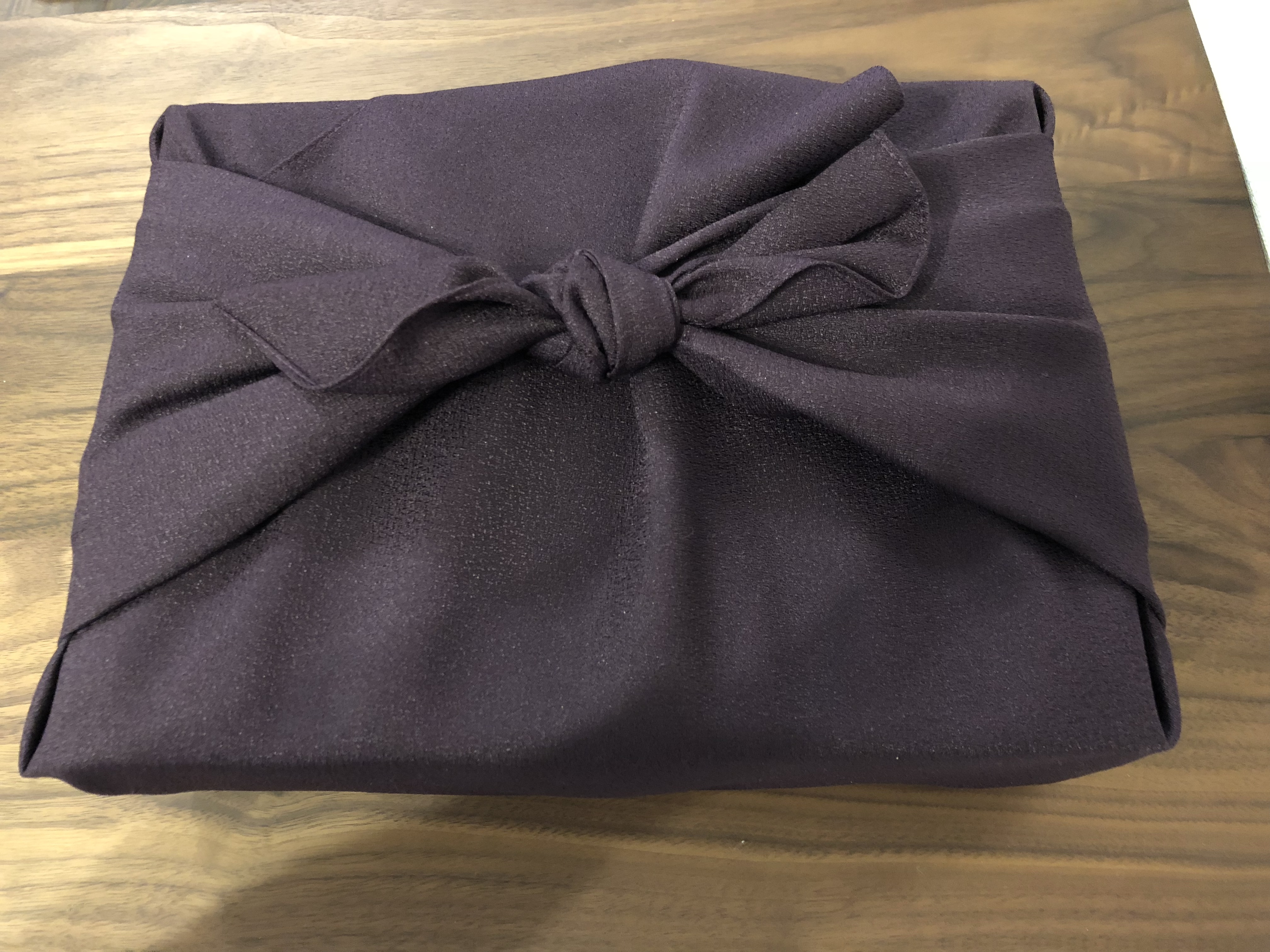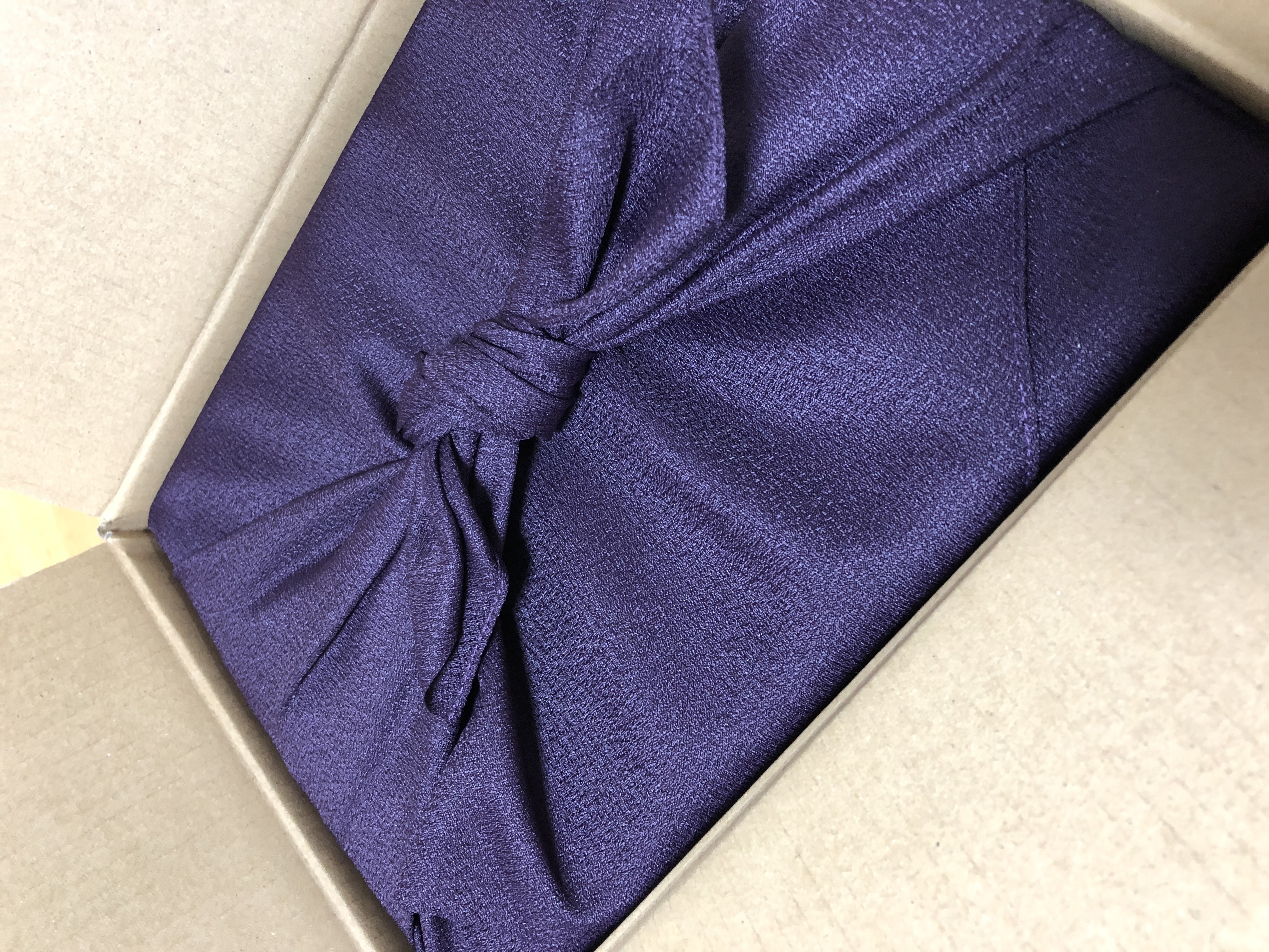 紫の風呂敷に包まれて届きました。贈り物にしてもいい感じです。