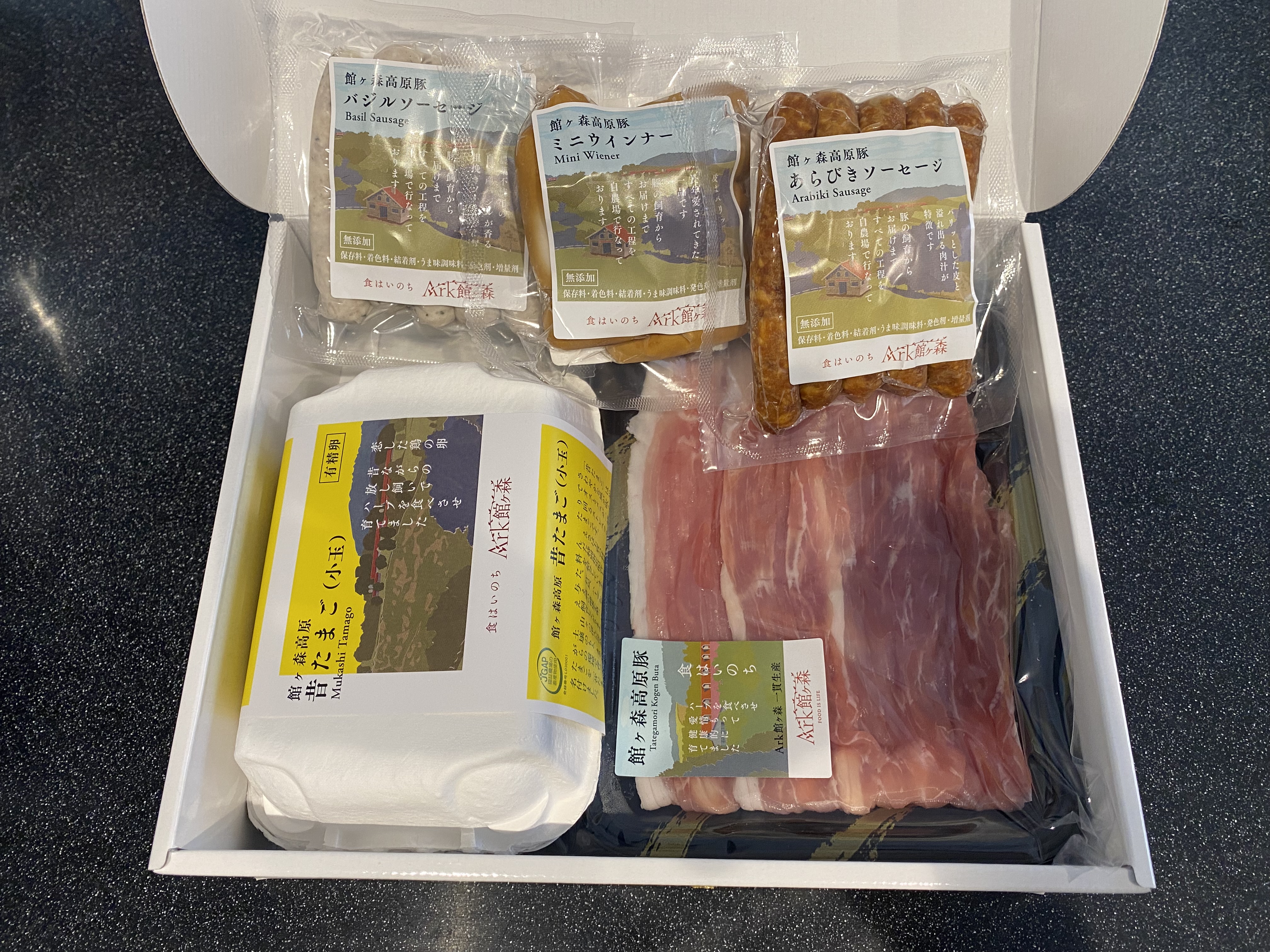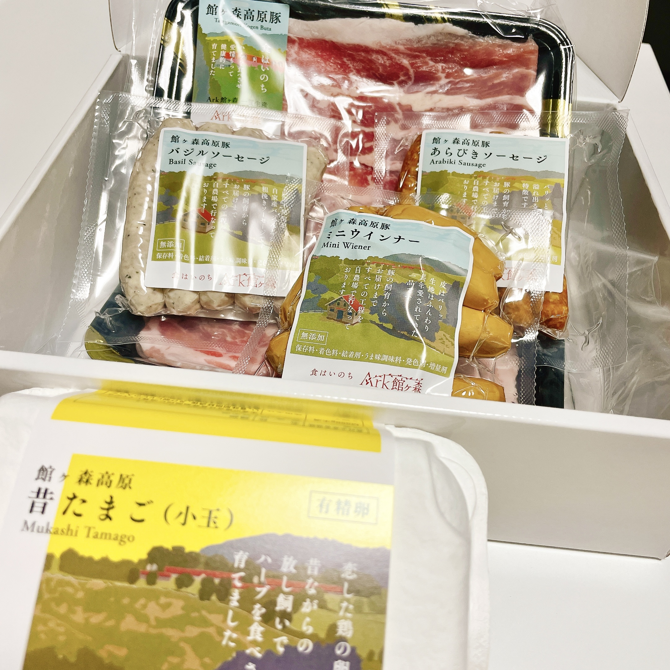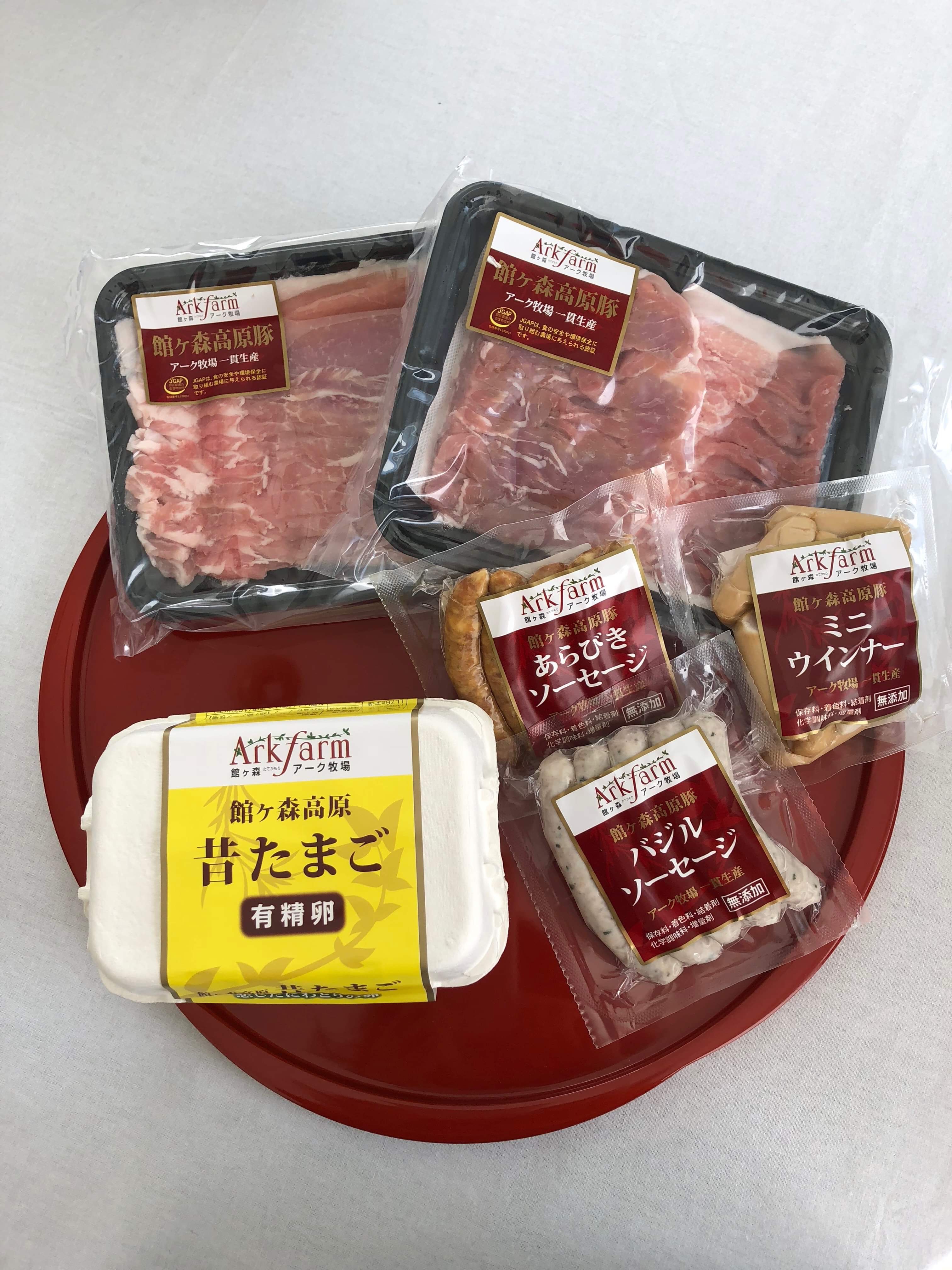 <館ヶ森高原豚><無添加ハム・ソーセージ><昔たまご>を一度に味わえるため、館ヶ森アーク牧場でのお取り寄せが初めて!という方にもおすすめです。