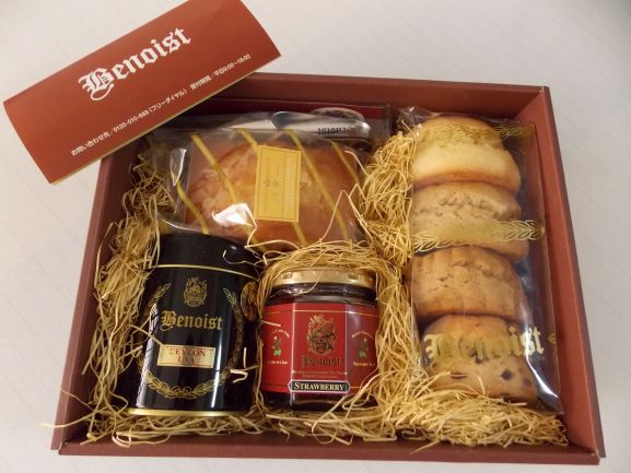 定番のスコーン4種に催事で人気のパウンドケーキバター、果肉がたっぷりなストロベリージャム、ストレートでもミルクティーにもあうセイロン・ウバ、簡単に紅茶が楽しめるティーインフュ―ザーが入ったギフトセットです。プレーンのスコーンはセットのストロベリージャムとの相性抜群。ベノアの香り高いアールグレイを贅沢に仕込んだのは紅茶のスコーン。イギリスでは定番のカレンズ(干しぶどう)のスコーンは隠し味に入れたシナモンがほのかに香ります。メイプルのスコーンはほんのり甘いメープル生地の中にくるみをちりばめ人気の商品。