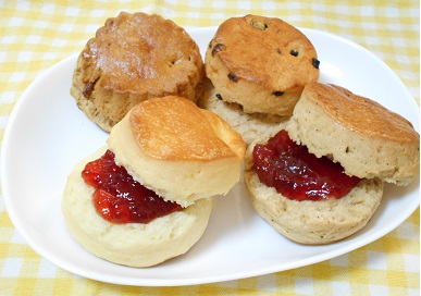スコーンは、アルミホイルに包みオーブンで温めてからたっぷりのジャムや蜂蜜、クリームチーズをのせてお召し上がりください。