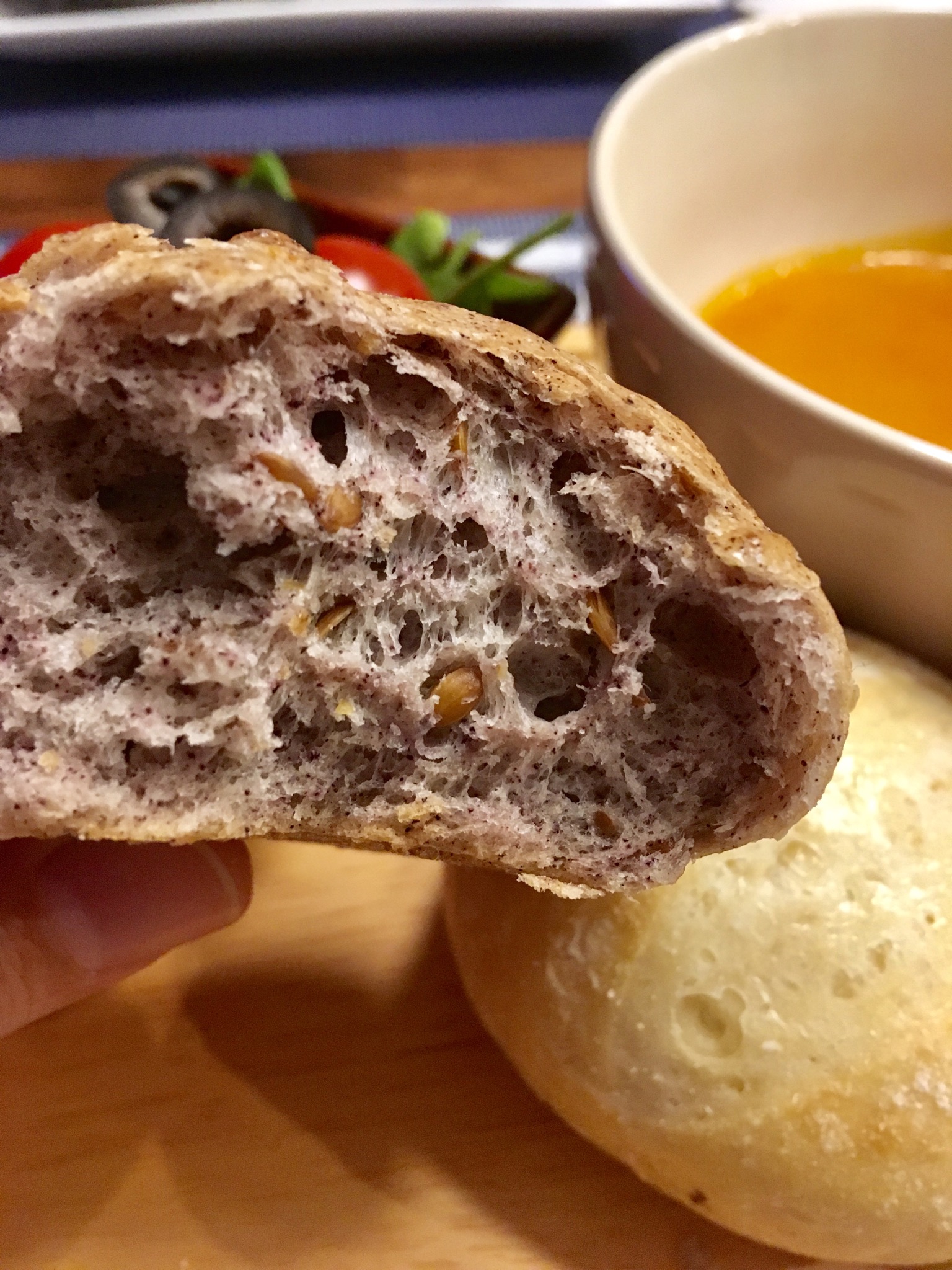 ・フラックスシード:スーパーフードとは知っていても今まで食べたことが無かったのですが、とても香りが良く、癖もなく、黒米粉の混ざった生地が見た目も食感も楽しく食べられました。