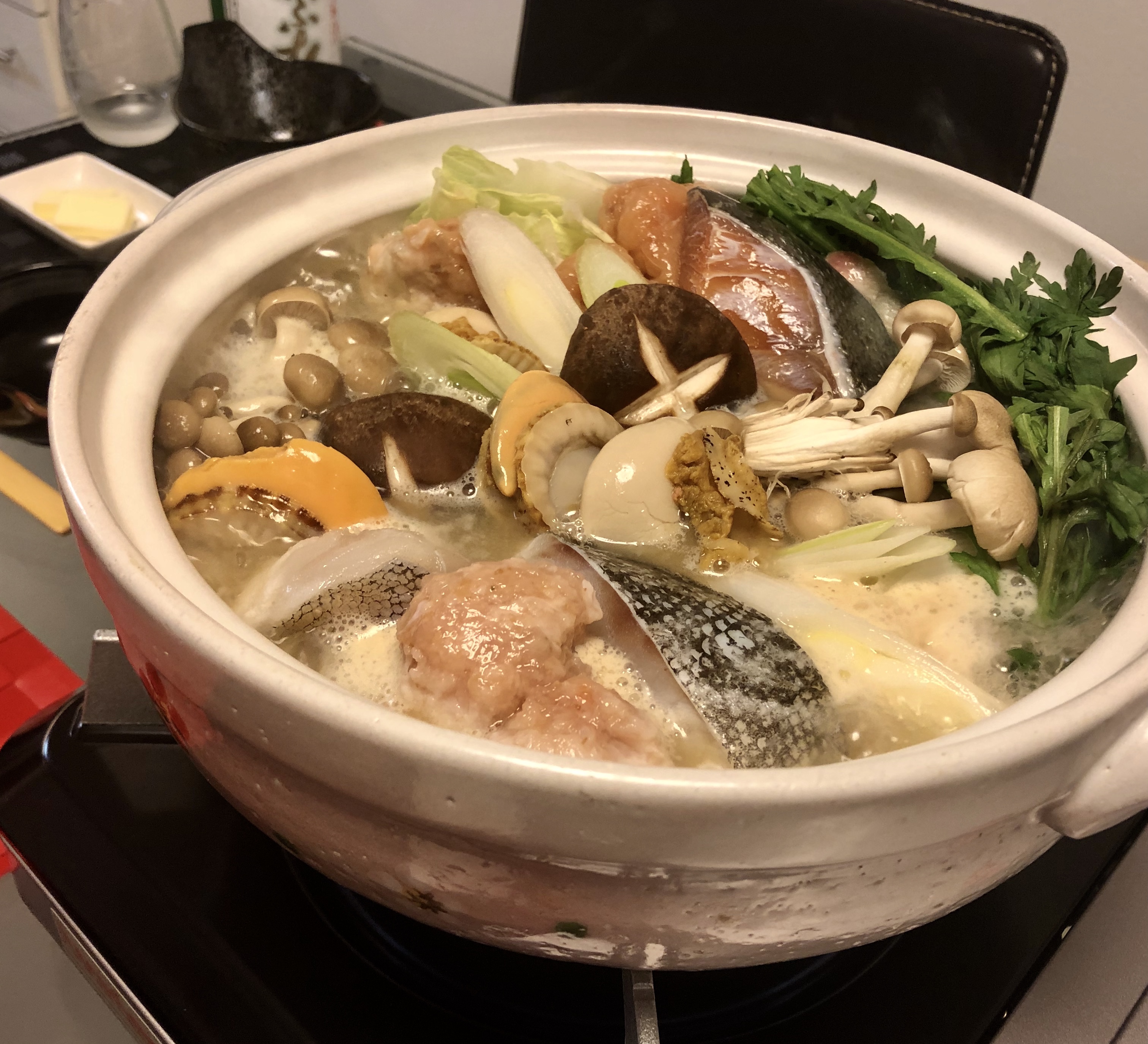 表記に「海鮮鍋のタレ」と書かれていますが、まさに石狩鍋を数段美味しくさせる工夫がされたスープだと思います。素材の風味を壊さず上品で深い味わいは、一瞬料亭のお出汁の味を思い浮かべた程でした。味噌仕立てだと、塩分が強いかと思いがちですが、本当にお上品なお味に仕上がりますよ♪バターを入れてもくどくならないので、コクの変化を楽しんで下さい♪