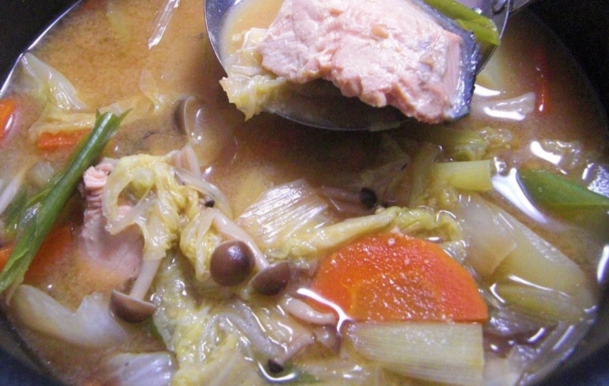 鮭などの魚や野菜の旨みが溶け出した味噌味スープは絶品なうえ、栄養を全て食べ尽くせるので、満足感が半端ないと評判です。
