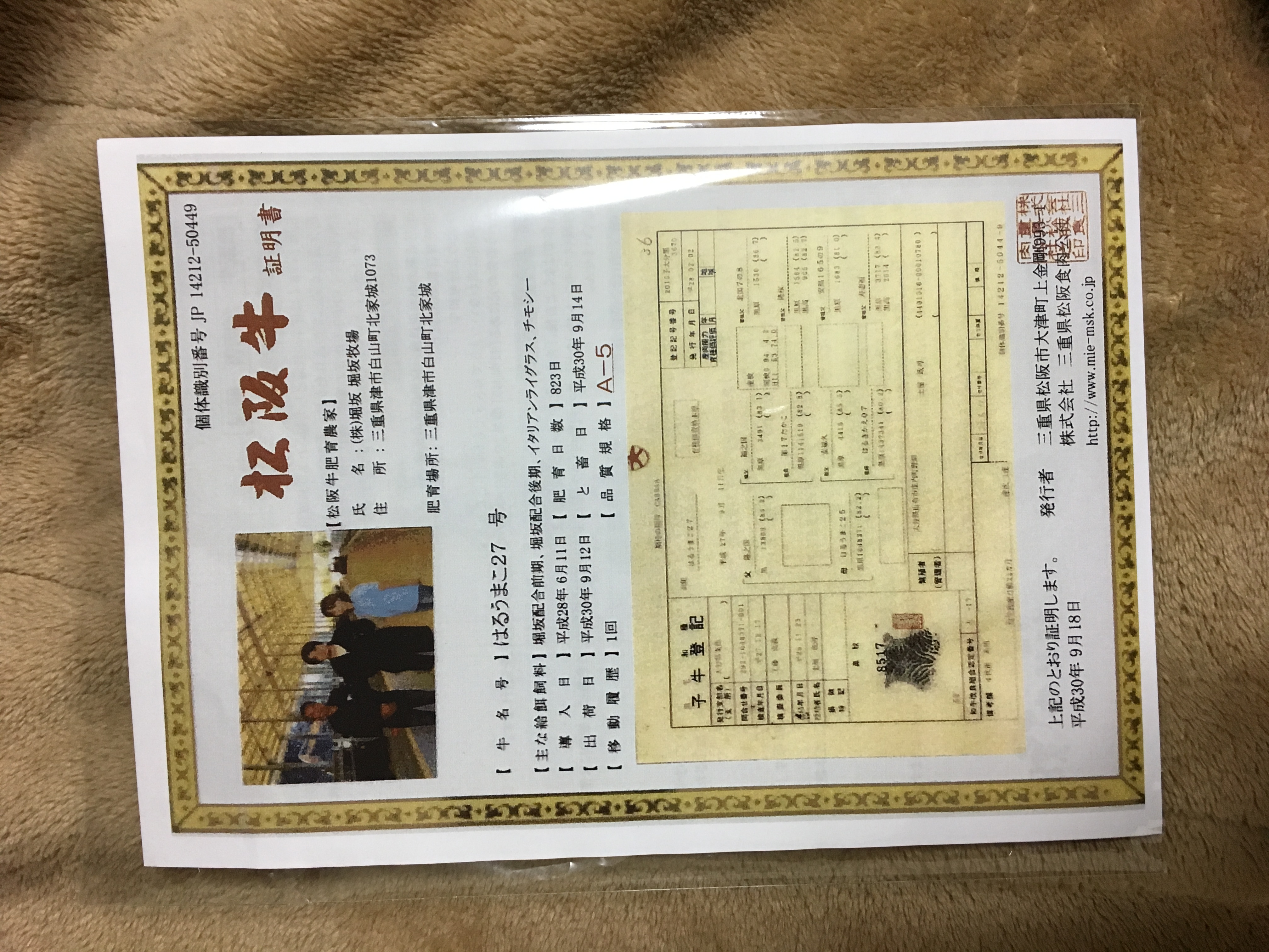 中を開けるとちゃんと松阪牛であるという証明書もありますます、期待が膨らみました。