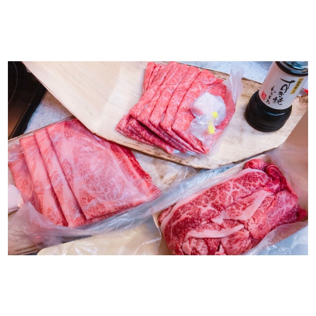 A5等級の松阪牛の「切り落とし250g」「モモスライス200g」「肩ローススライス200g 」の贅沢な3種食べ比べセットです。濃厚な味わいの松阪牛肉は、すき焼きにすれば最高の旨味を引き出します。ちょっぴり贅沢したい時や記念日など、家族みんなで美味しく楽しんでいただけます。