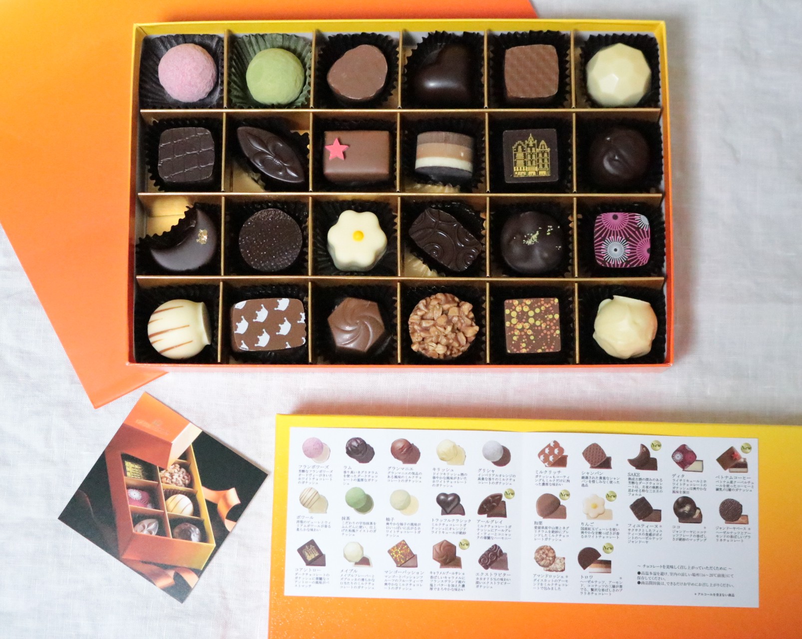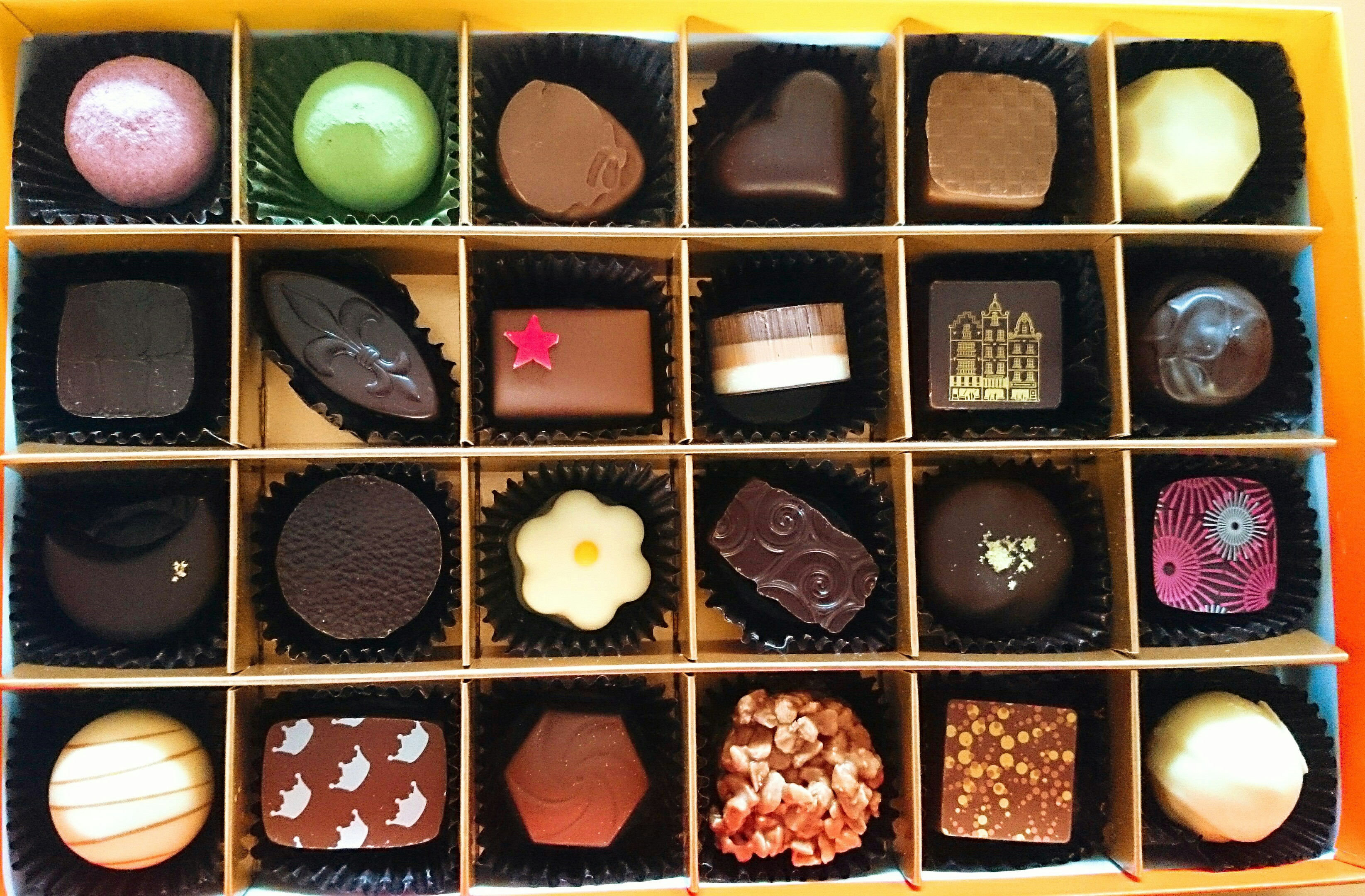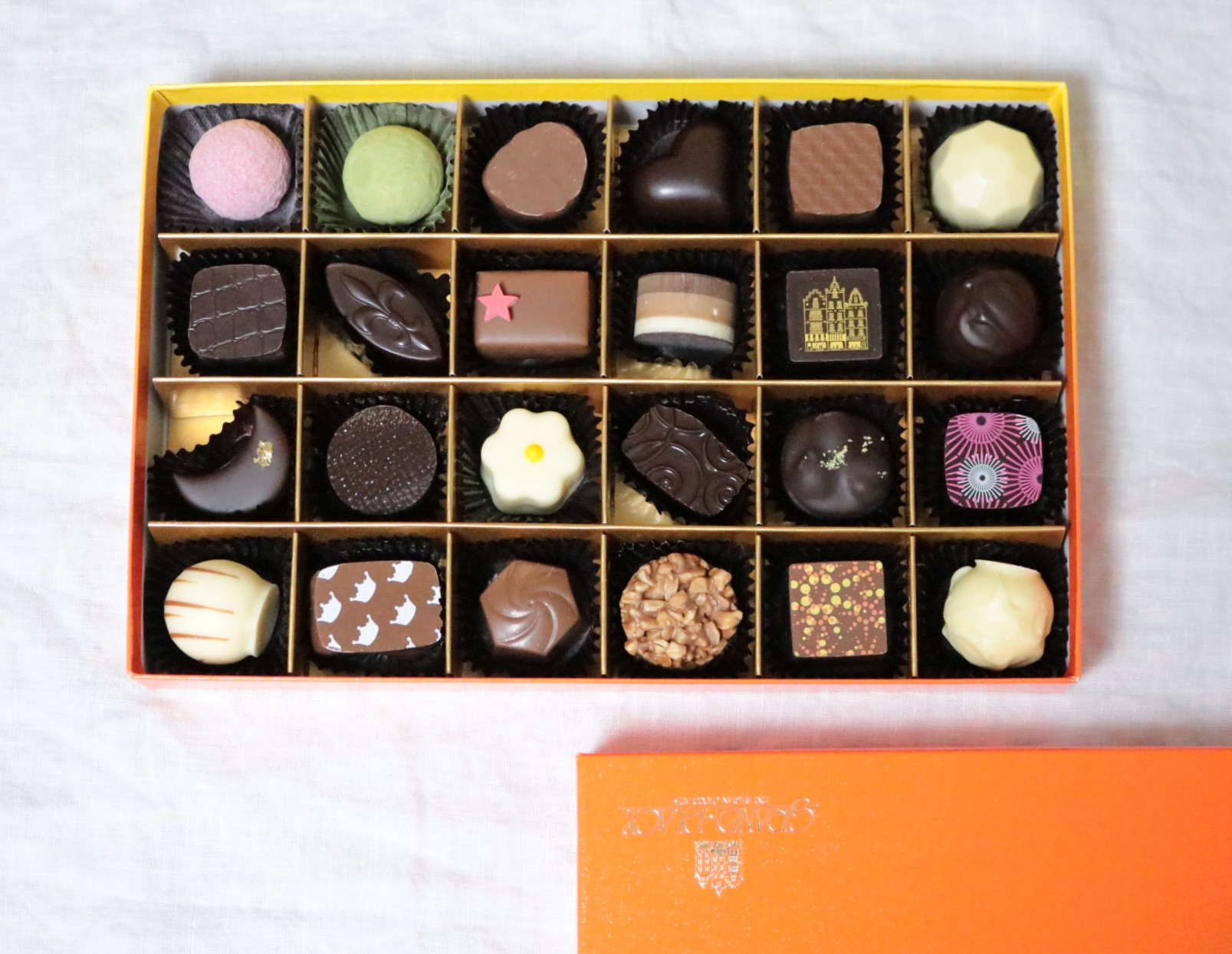ベルギー産のクーベルチュールに、グランプラスのこだわりの原材料をあわせて、りんごや和栗など24種類のフレーバーをご用意しました。