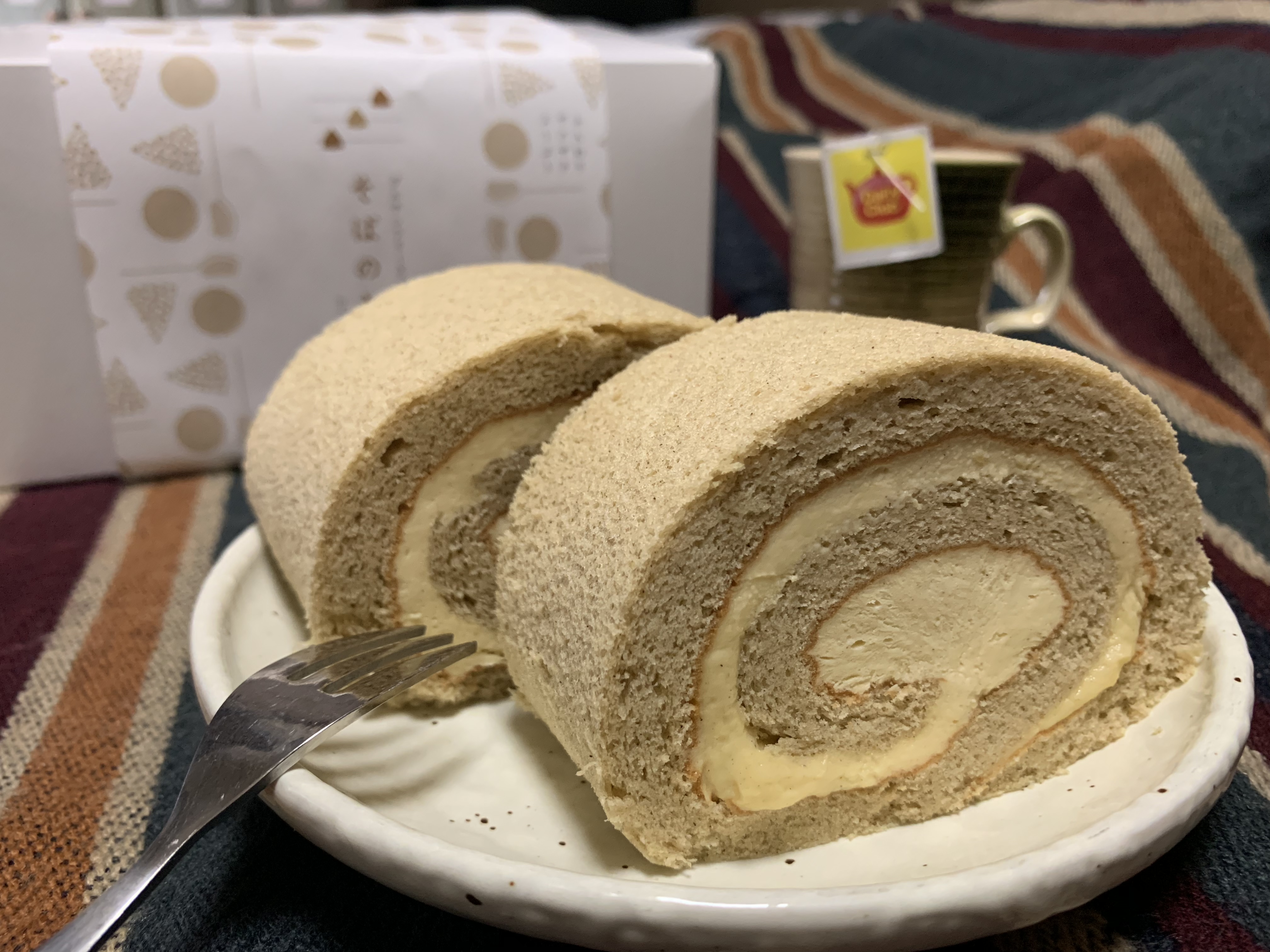 そばの風味はありながら、スイーツを食べた!と言う満足感も感じられるロールケーキです。