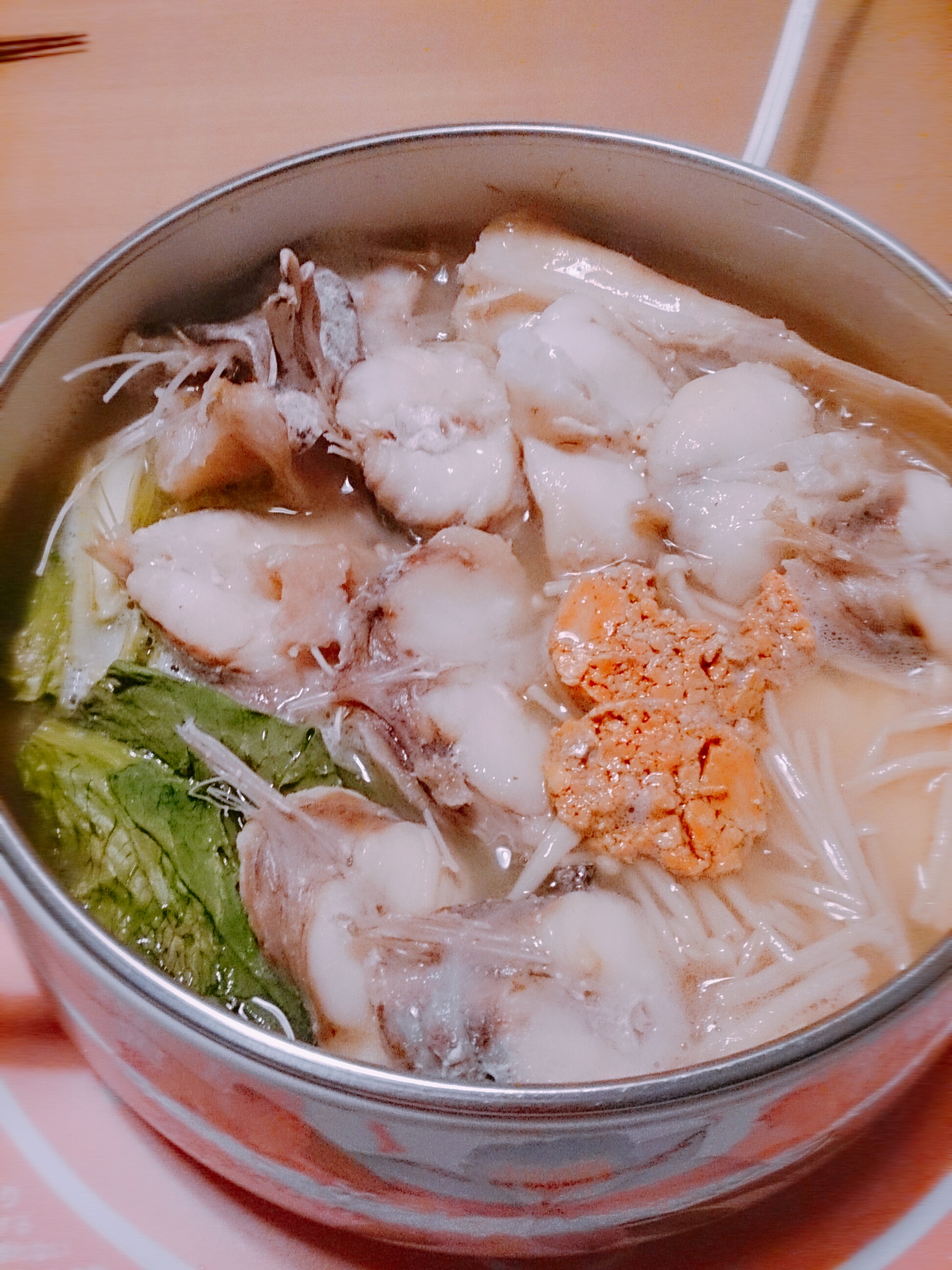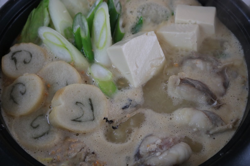 あんこうのアラや骨の周りは、ぷるっとしていて、コラーゲンたっぷりでした。